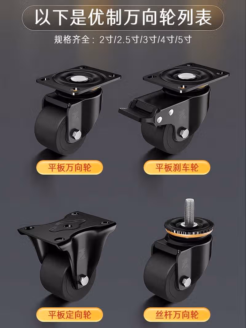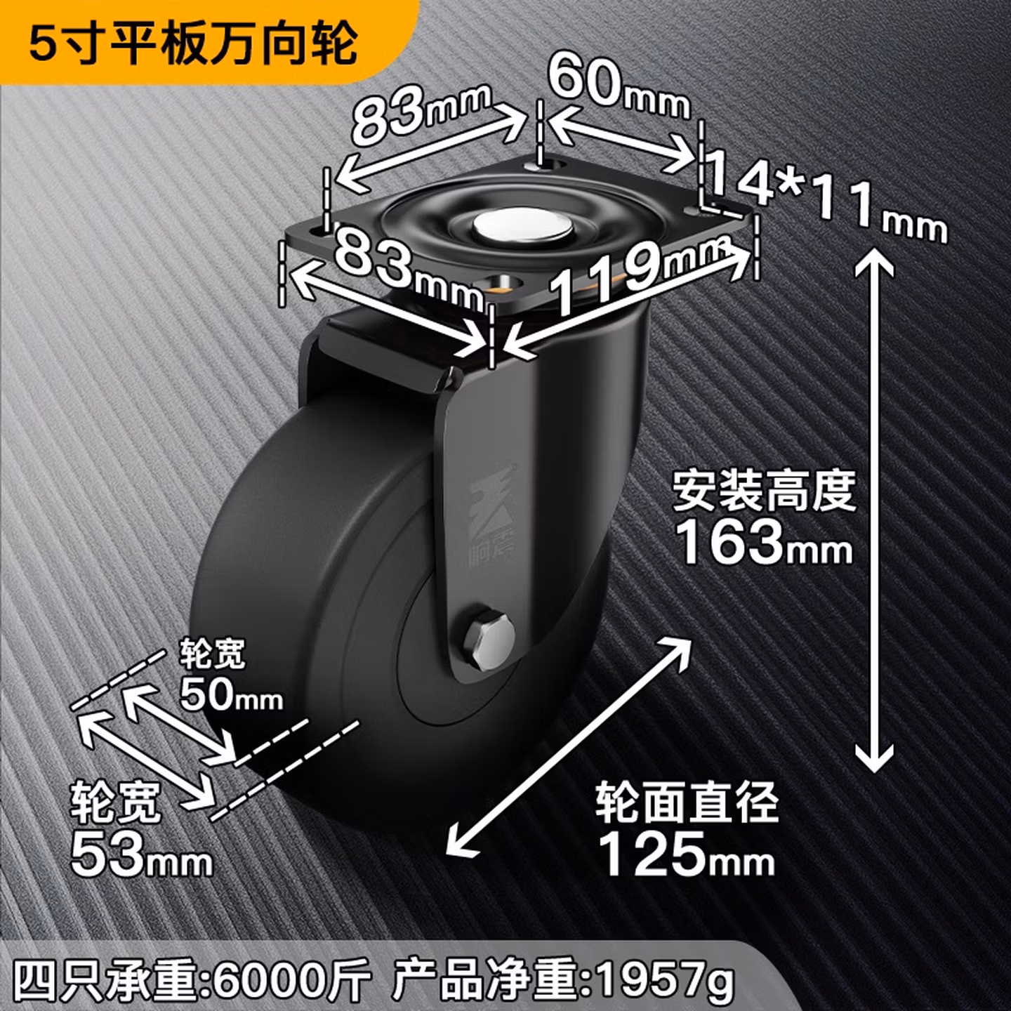 > RSRDDY定制平板车轮子配件大全承重移动滑轮小滚轮重型脚轮万向轮带刹车 5寸平板定向轮