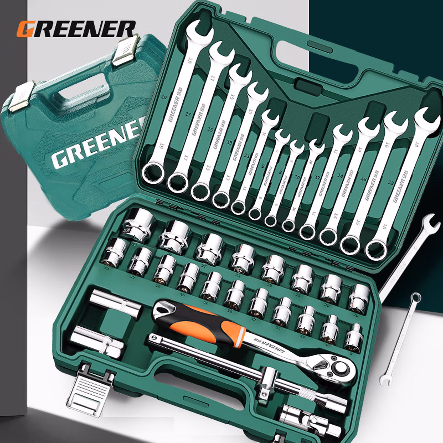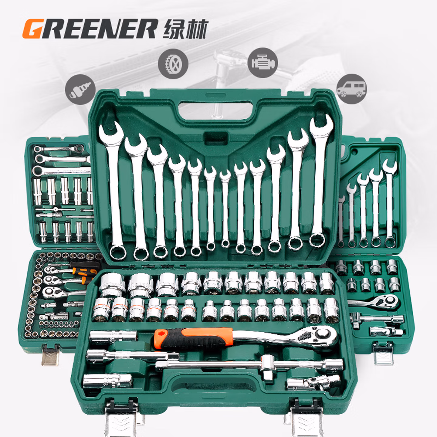 > 绿林37件套筒扳手工具套装大全汽修工具专用大全汽车维修修理汽保 经典72齿弯柄汽修37件套