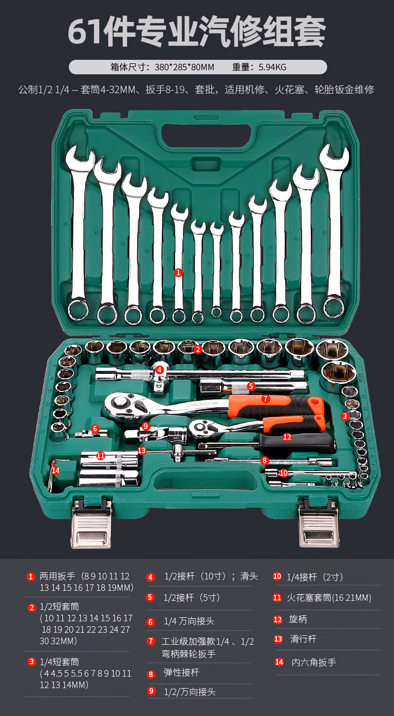绿林37件套筒扳手工具套装大全汽修工具专用大全汽车维修修理汽保 经典72齿弯柄汽修37件套
