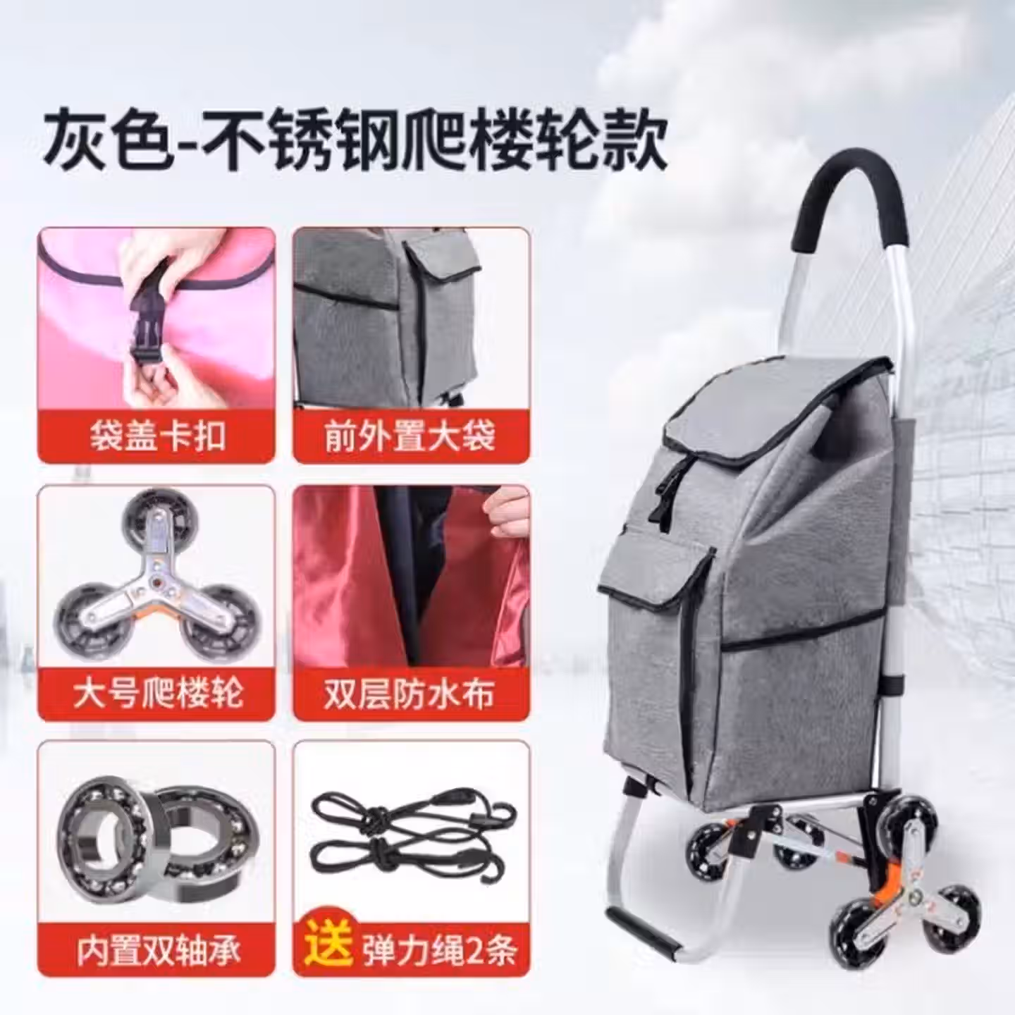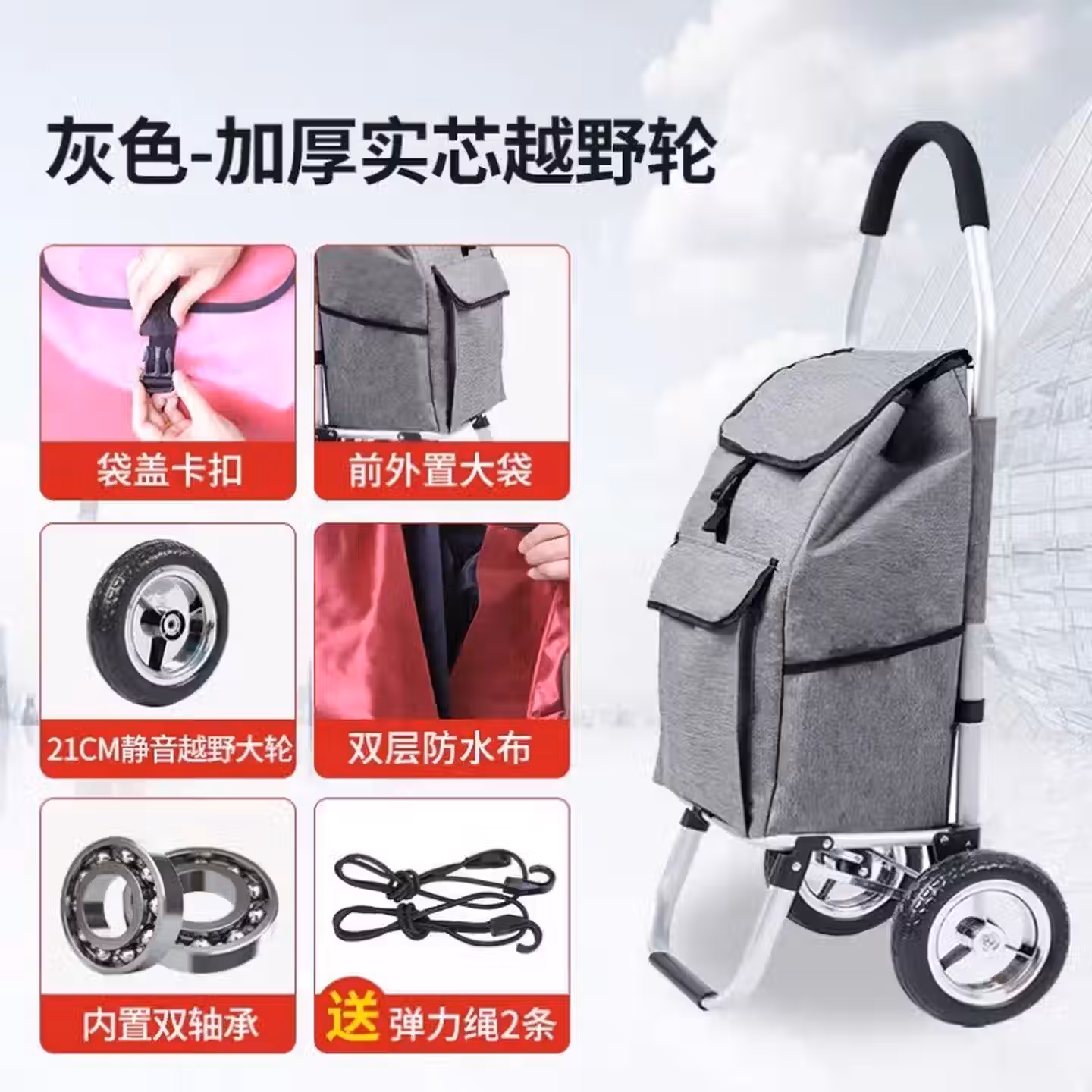 > 拉杆老人购物车买菜小拉车家用快递爬楼加厚超市折叠神器老年带轮 铝合金车架-不锈钢6轮(大号)灰色Kt4