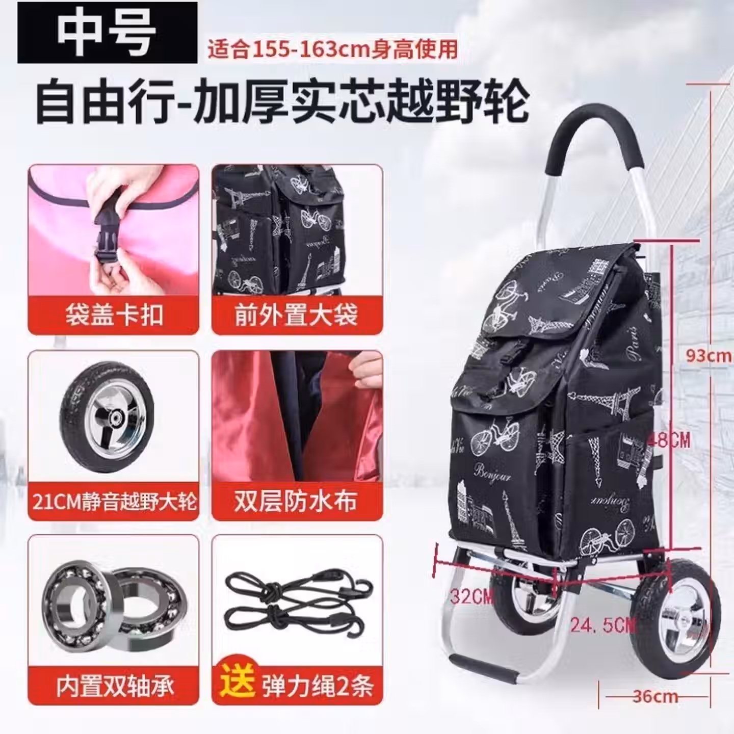 拉杆老人购物车买菜小拉车家用快递爬楼加厚超市折叠神器老年带轮 铝合金车架-不锈钢6轮(大号)灰色Kt4