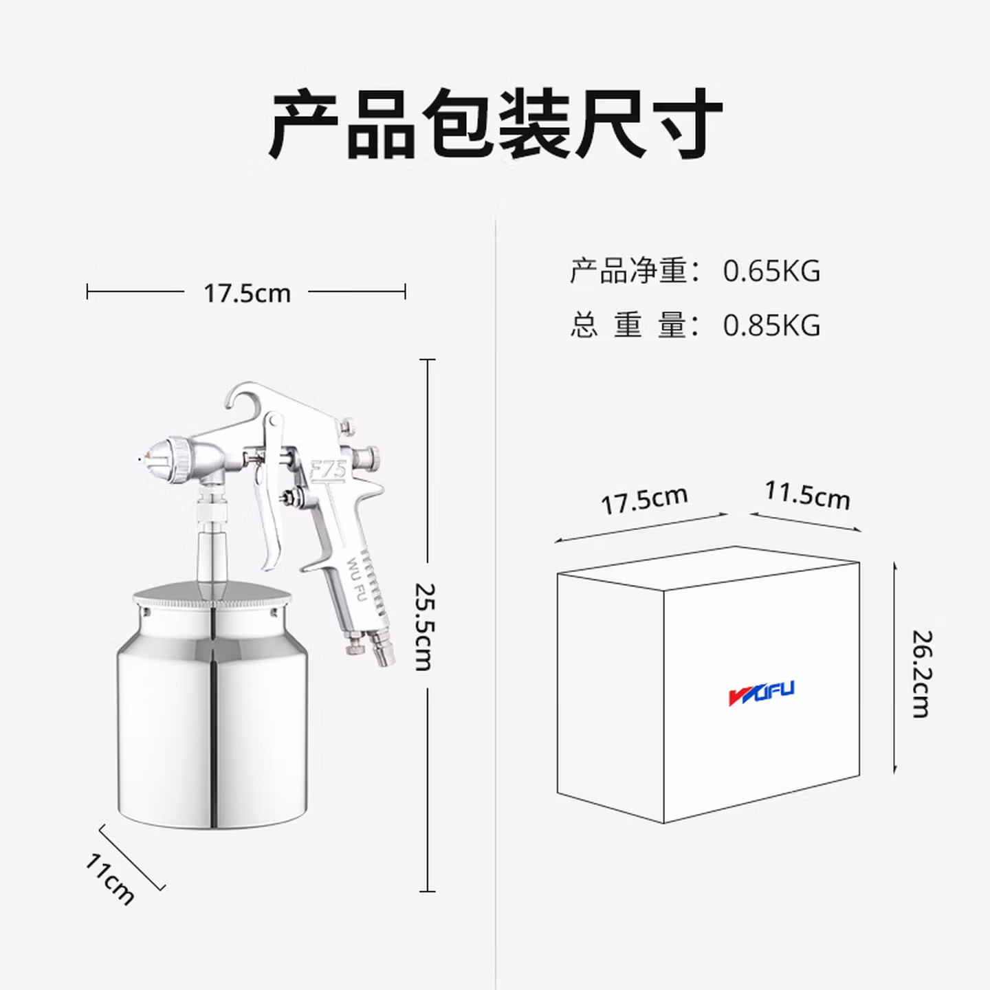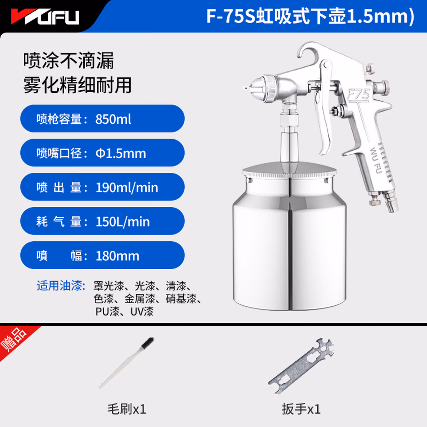 > 五福气动喷漆枪F-75S(1.5mm)油漆高雾化下壶气泵喷壶家具木器面漆喷枪