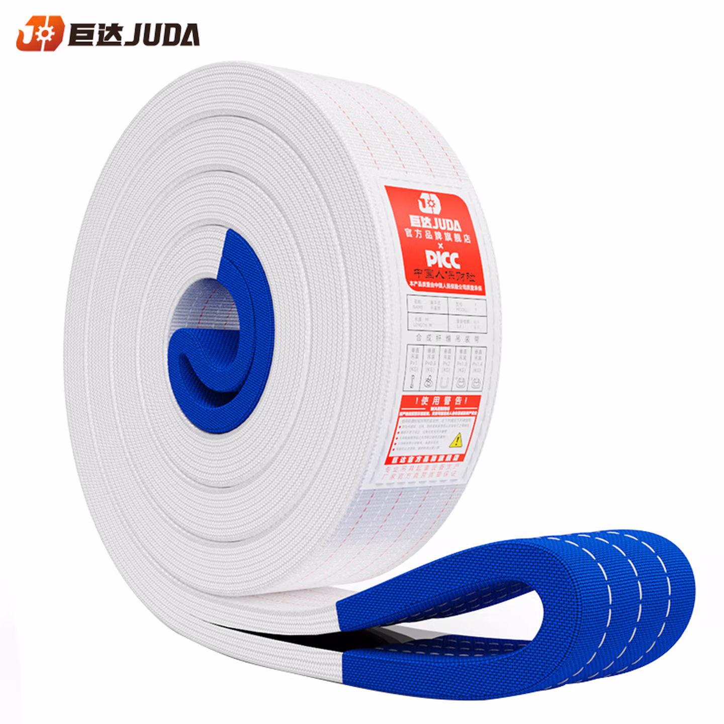 > 巨达 吊装带六层10吨6米白色扁平工业起重吊带行车叉车双扣环形拖车绳