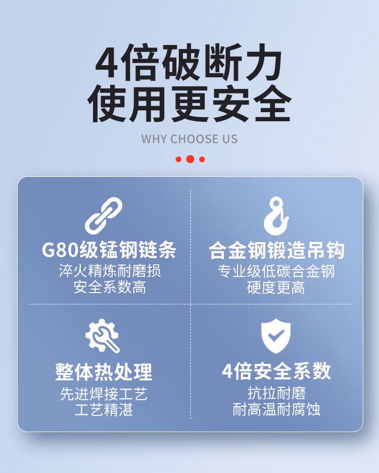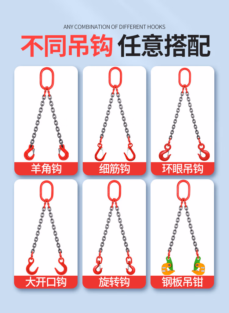 > 合见贡吊链起重吊具2/5吨3锰钢链条吊索具钩子铁链吊环四爪吊钩双勾挂钩 金色_11吨1米【单钩】