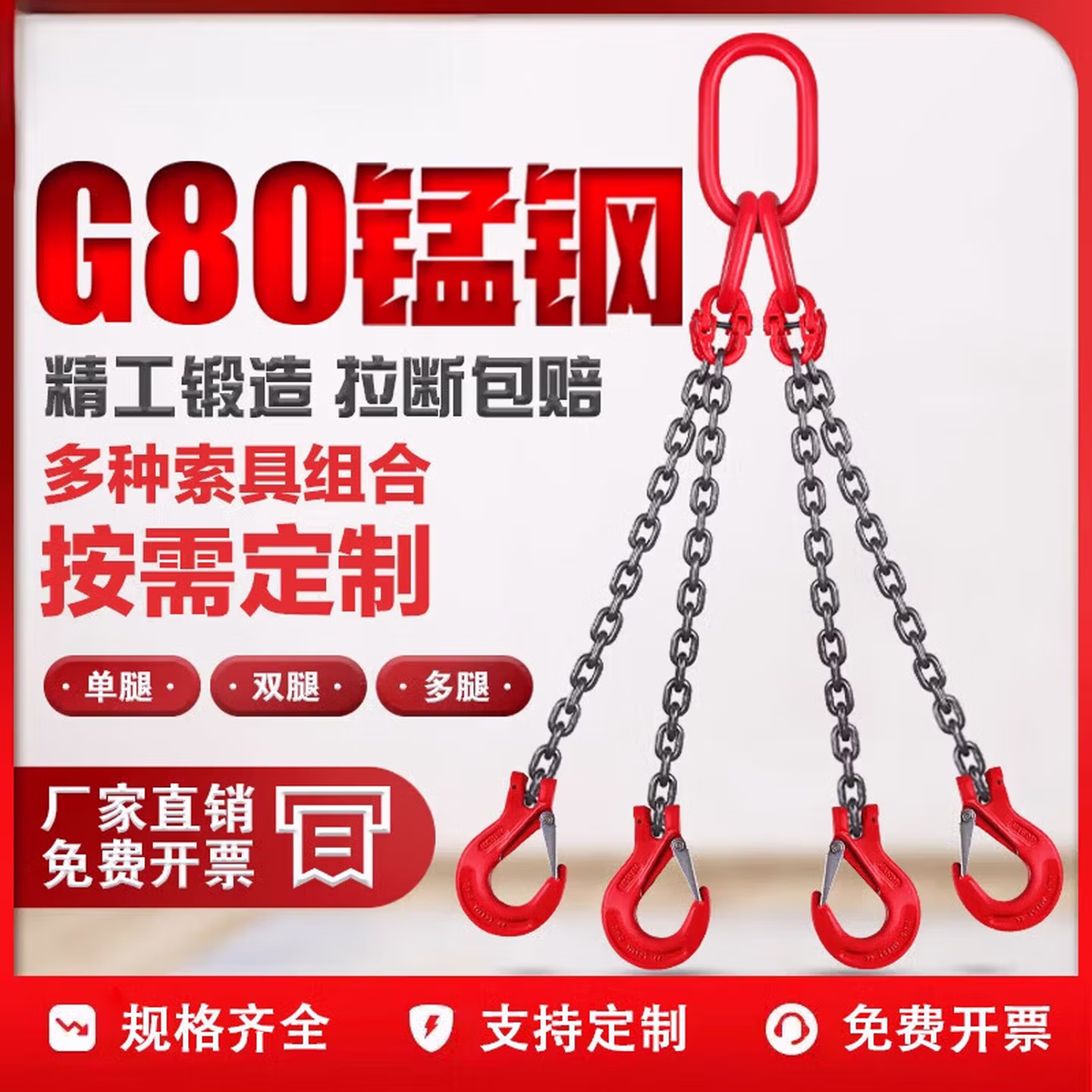 合见贡吊链起重吊具2/5吨3锰钢链条吊索具钩子铁链吊环四爪吊钩双勾挂钩 金色_11吨1米【单钩】