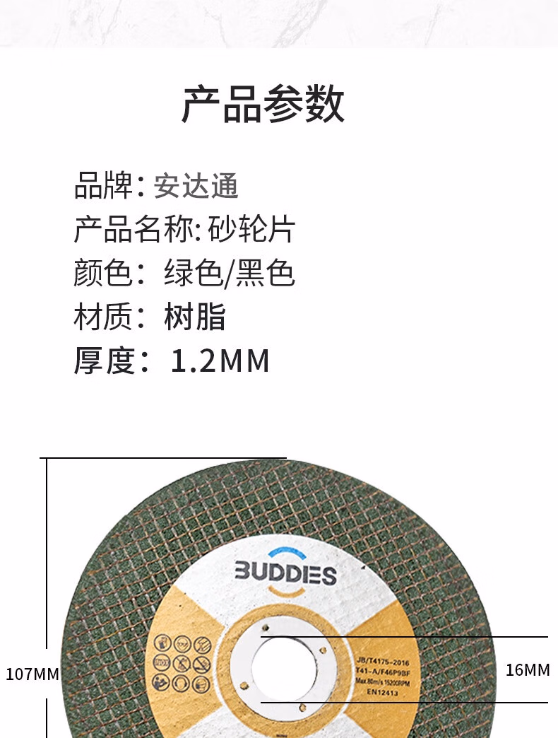 > 安达通 砂轮片 角磨机切割抛光打磨树脂金属不锈钢锯片绿色双网4寸 黑色双网4寸【50片装】