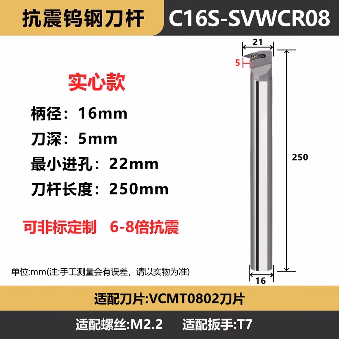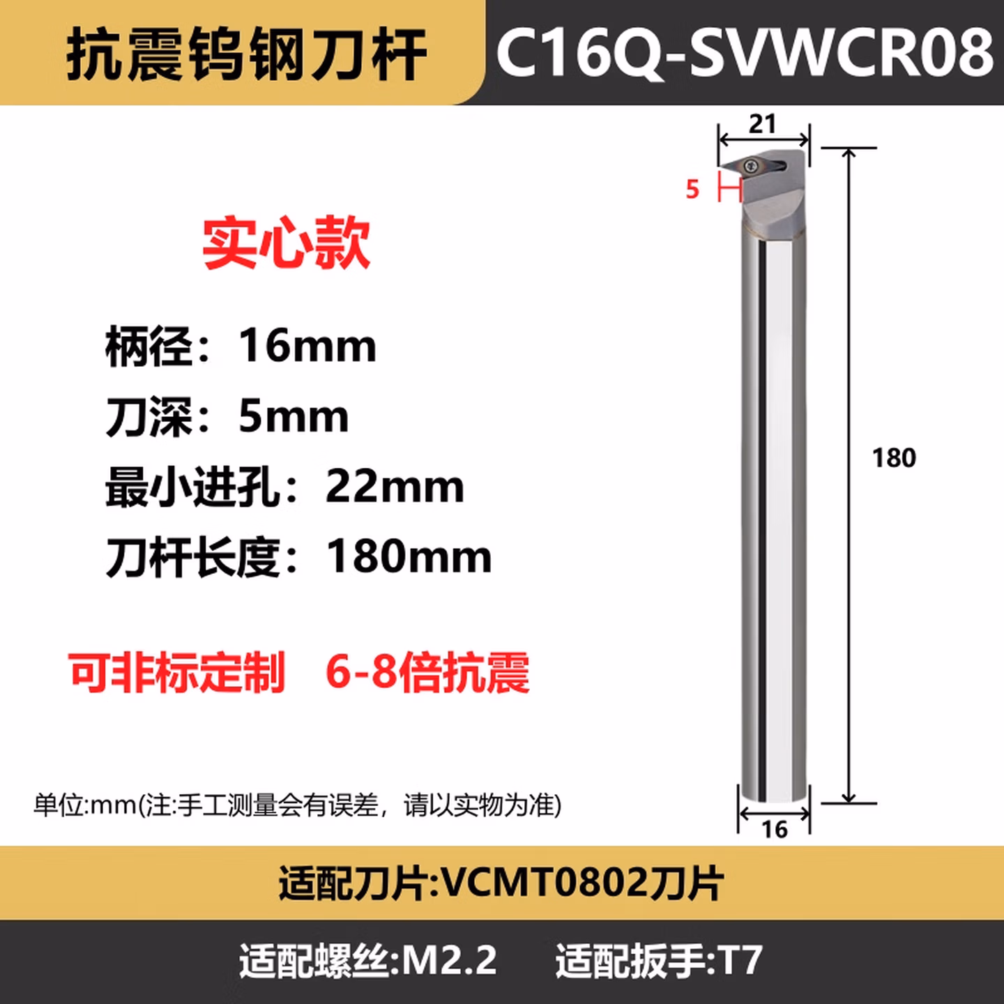 > 数控SVWCR钨钢抗震内孔刀杆实心镗孔勾刀防震内冷硬质合金车刀杆 实心款C10K-SVWCR08总长125