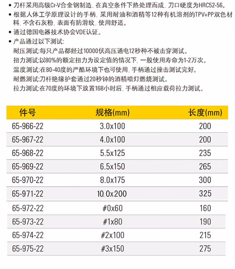> 史丹利 65-970-22 绝缘一字螺丝批8.0x175mm起子改锥螺丝刀