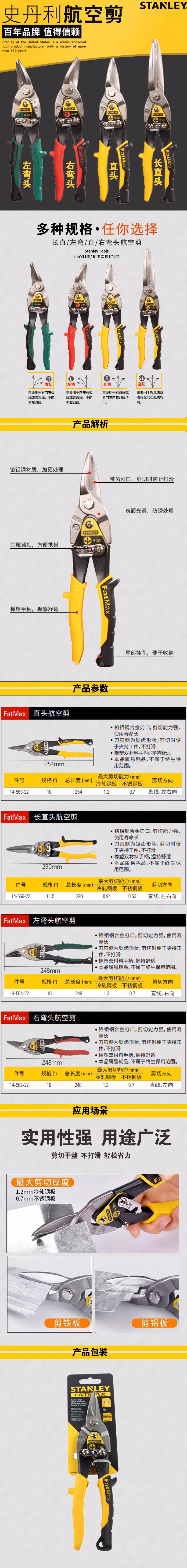 史丹利(STANLEY)直头航空剪10英寸工业级不锈钢板铁皮剪金属剪铁网剪14-563
