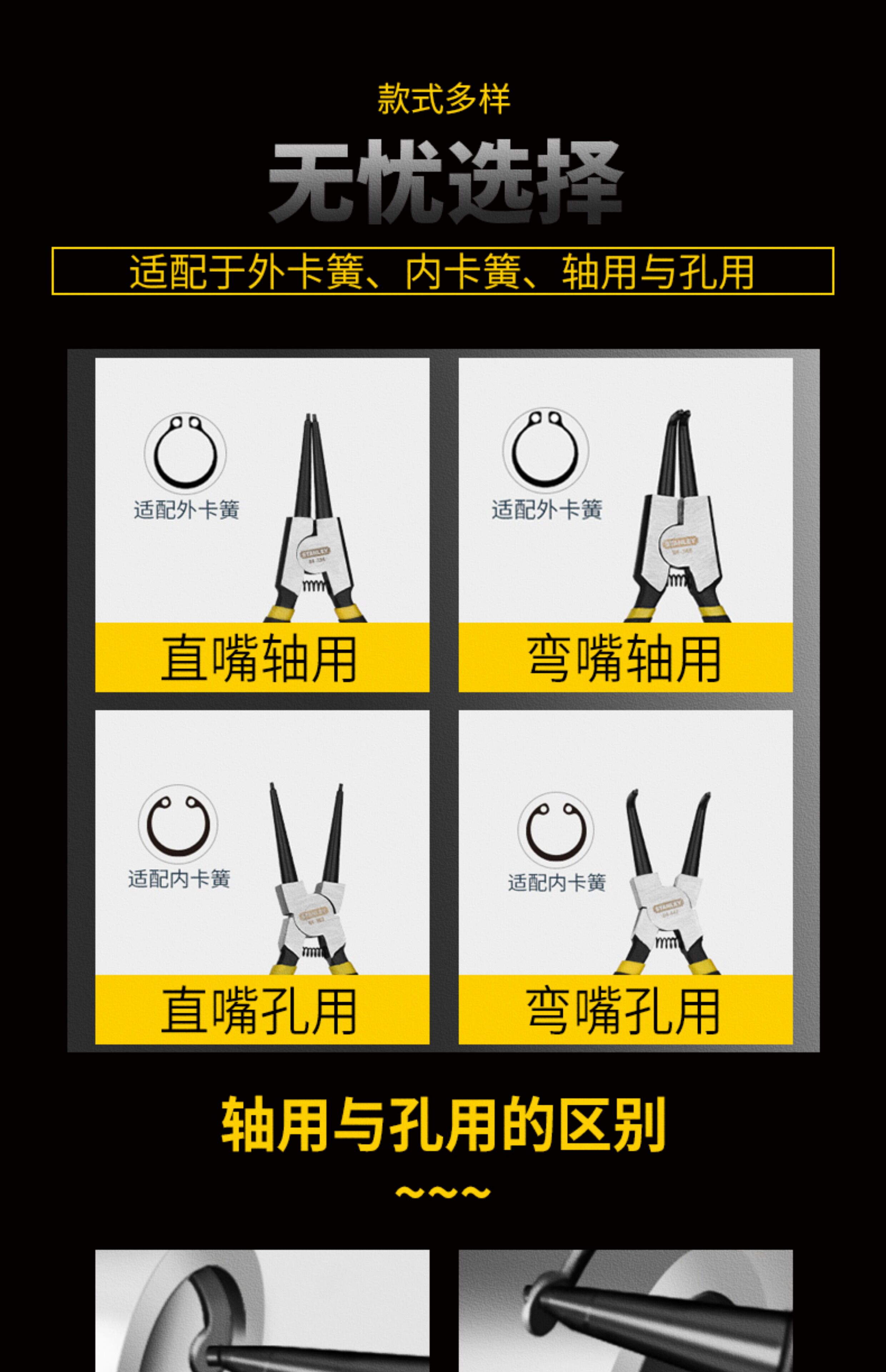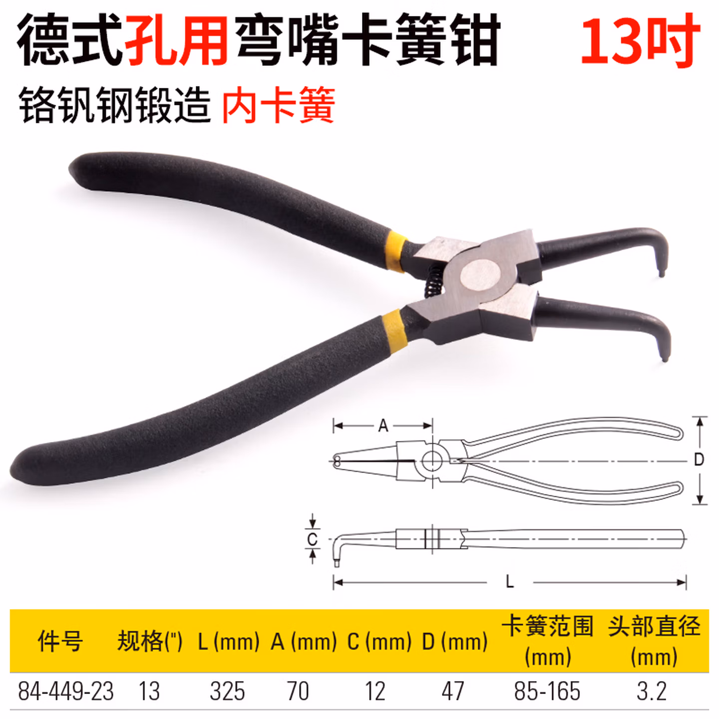 > 史丹利(STANLEY)卡簧钳德式轴用孔用内卡外卡挡圈钳卡环钳子套装两用夹簧钱 外弯84-338 5寸