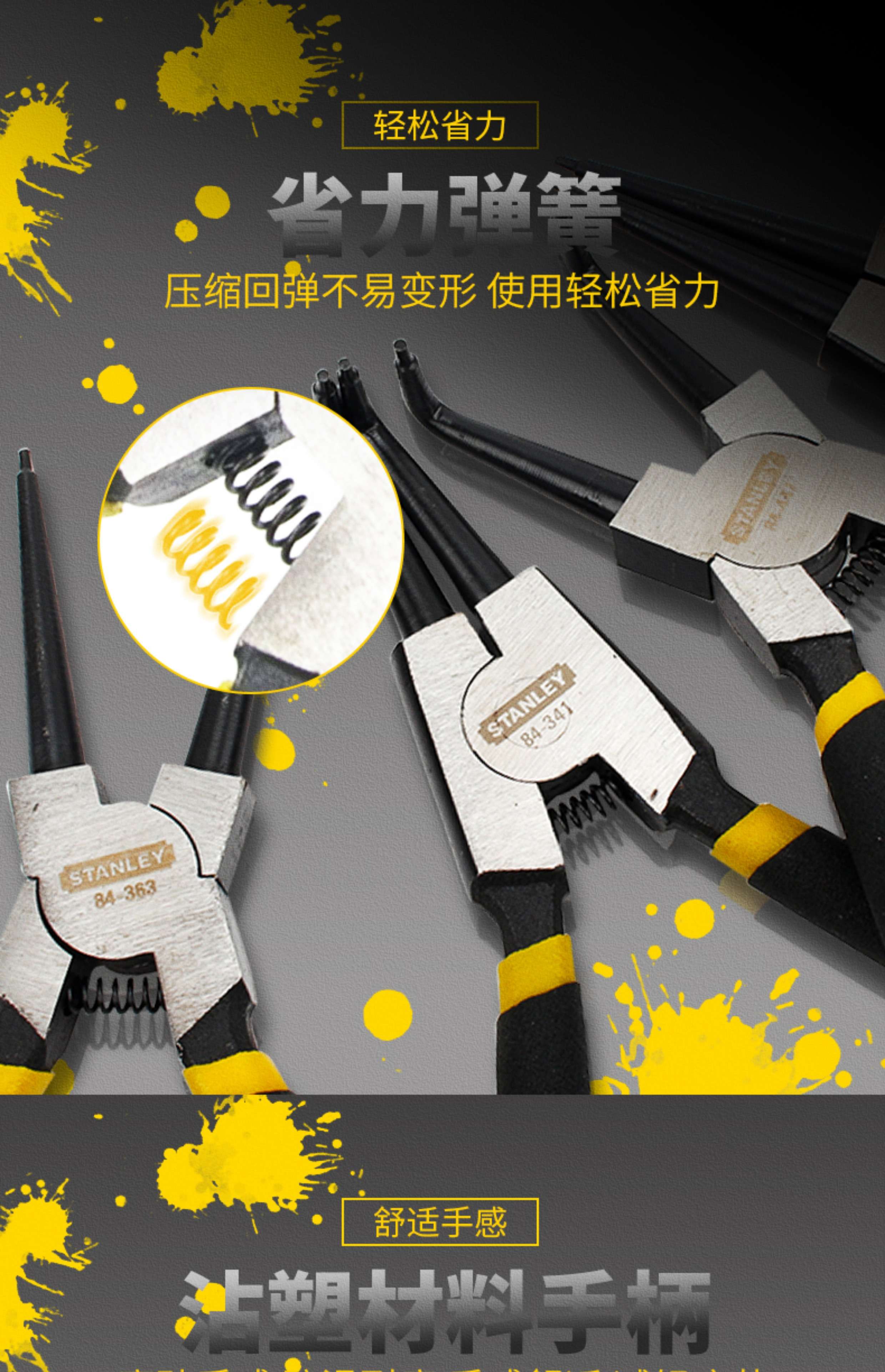 史丹利(STANLEY)卡簧钳德式轴用孔用内卡外卡挡圈钳卡环钳子套装两用夹簧钱 外弯84-338 5寸