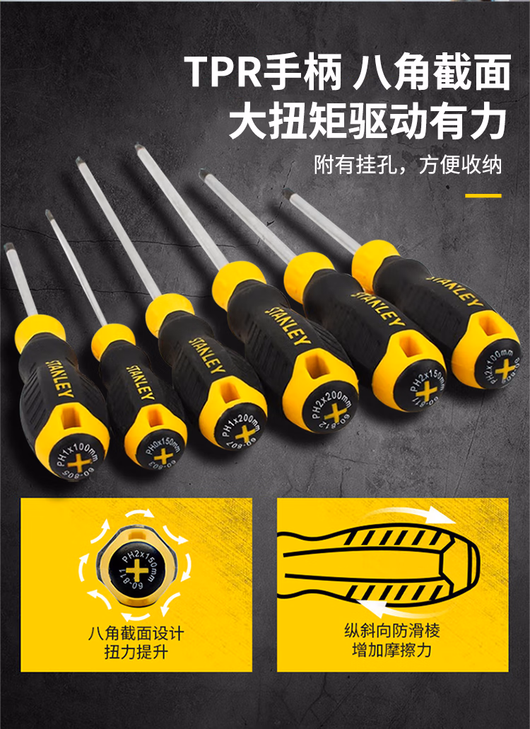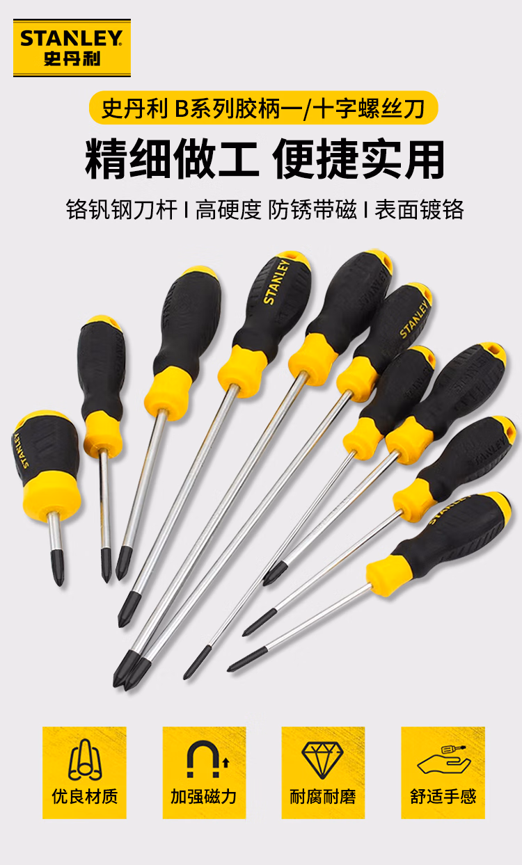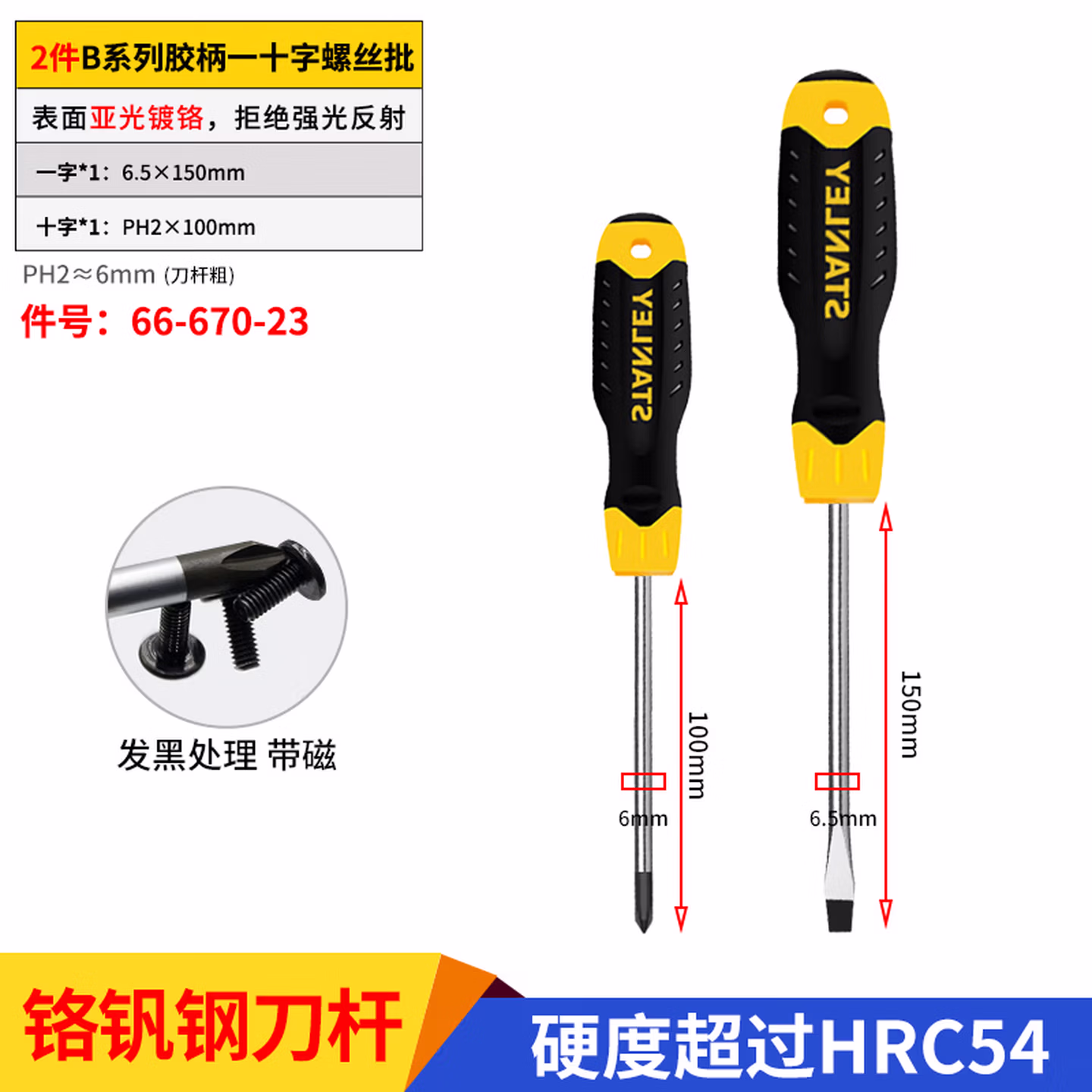 > 史丹利(STANLEY)2件B系列胶柄一字十字螺丝批 电工起子家用维修螺丝刀套装 66-670