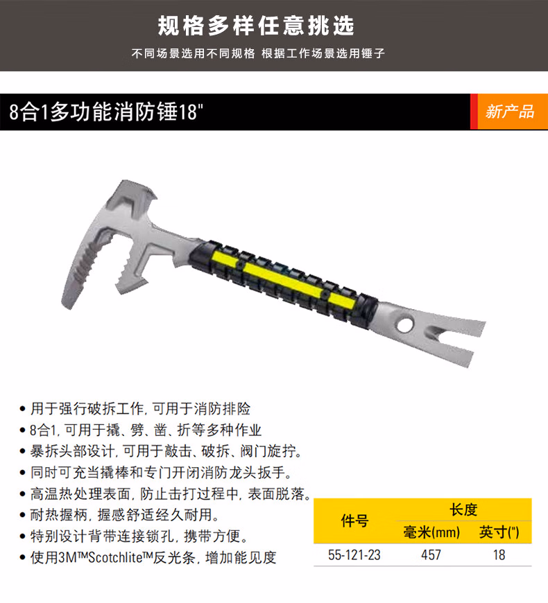 > 史丹利(STANLEY)8In1多功能消防锤30英寸消防安全锤求生锤破拆工具55-122-23