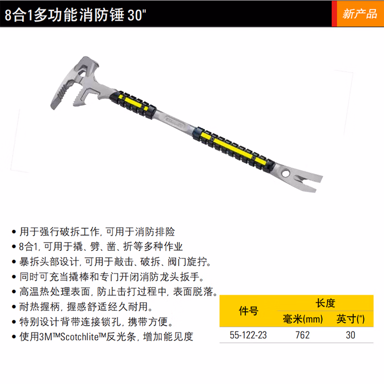 史丹利(STANLEY)8In1多功能消防锤30英寸消防安全锤求生锤破拆工具55-122-23