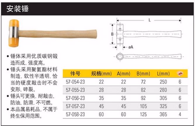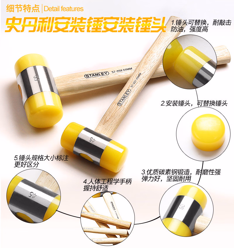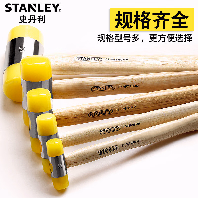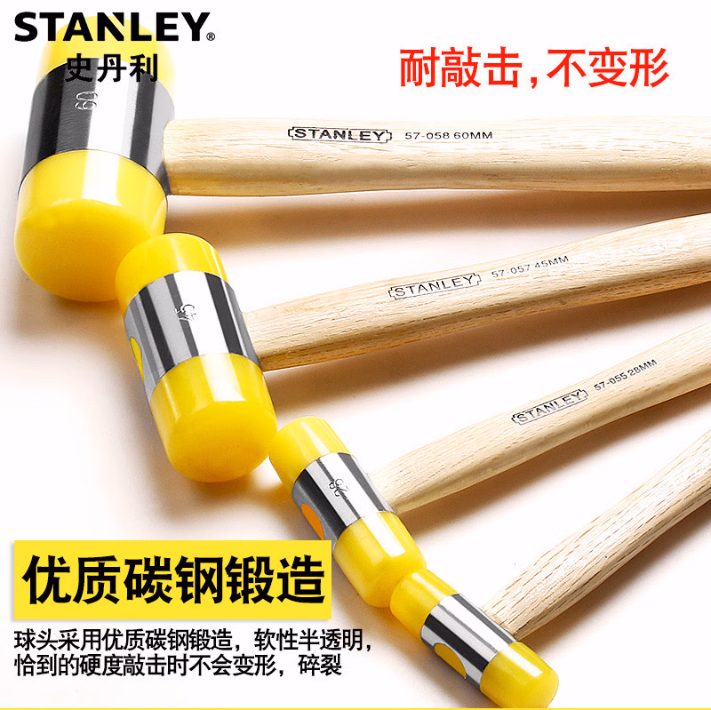 > 史丹利(STANLEY)木柄安装锤22mm橡胶橡皮锤瓷砖装修防震皮榔头57-054