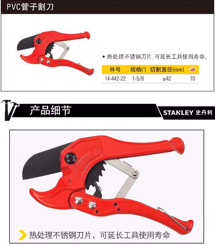 > 史丹利(STANLEY)PVC管子割刀0-42mm水管刀切管器割管器切管器剪管器14-442-22
