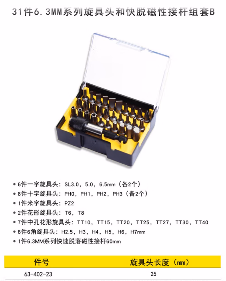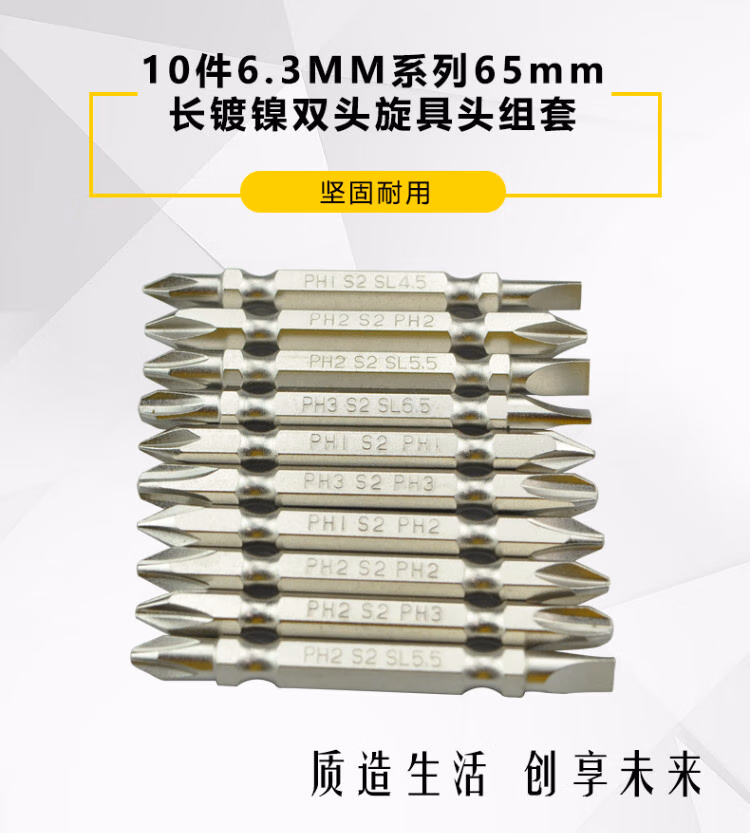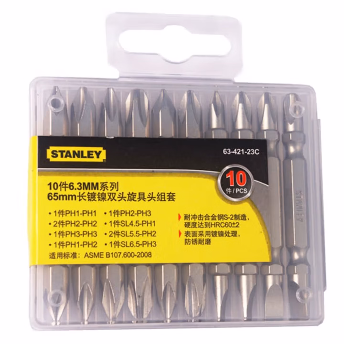 > 史丹利(STANLEY)10件6.3MM系列65mm长镀镍双头旋具头螺丝批头组套63-421-23C