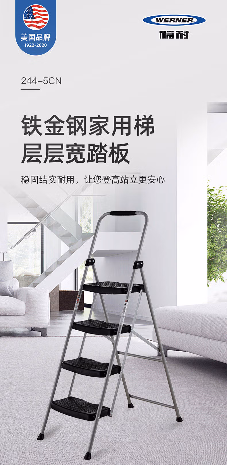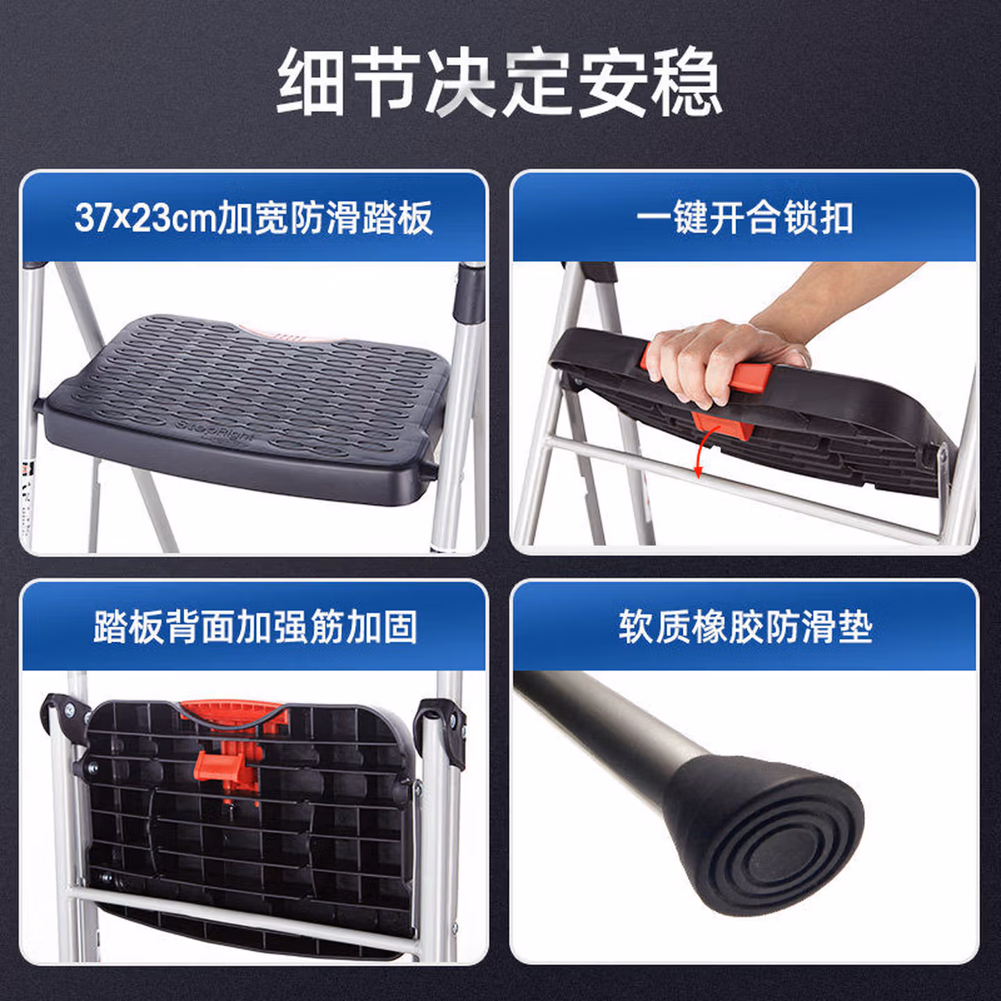 > 稳耐家用人字梯折叠梯15米四步铁梯防滑踏板222622362445CN 223-6CN3步铁梯高约72cm顶踏37*23cm