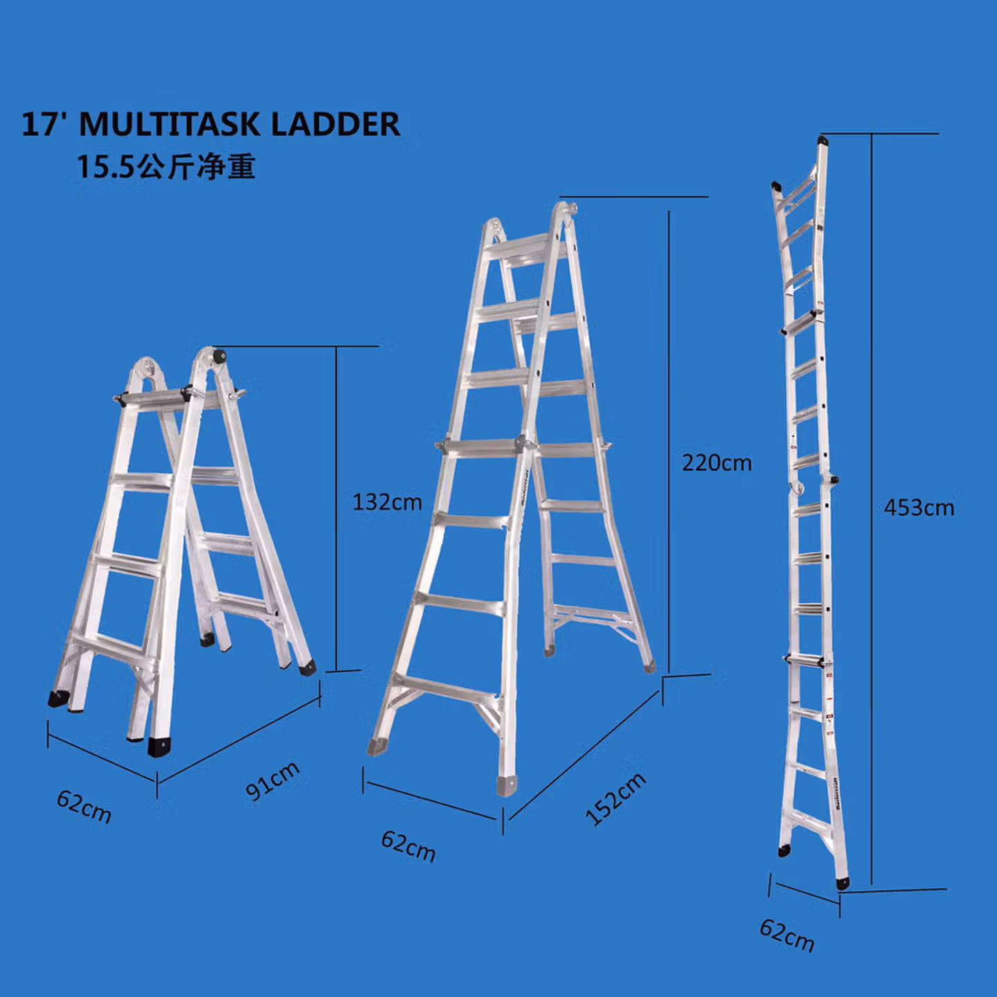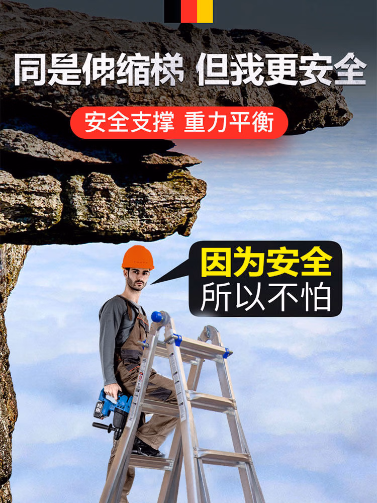 > 稳耐梯子伸缩工程梯加厚人字梯铝合金多功能家用升降小巨人梯 MT-13三-五阶超厚