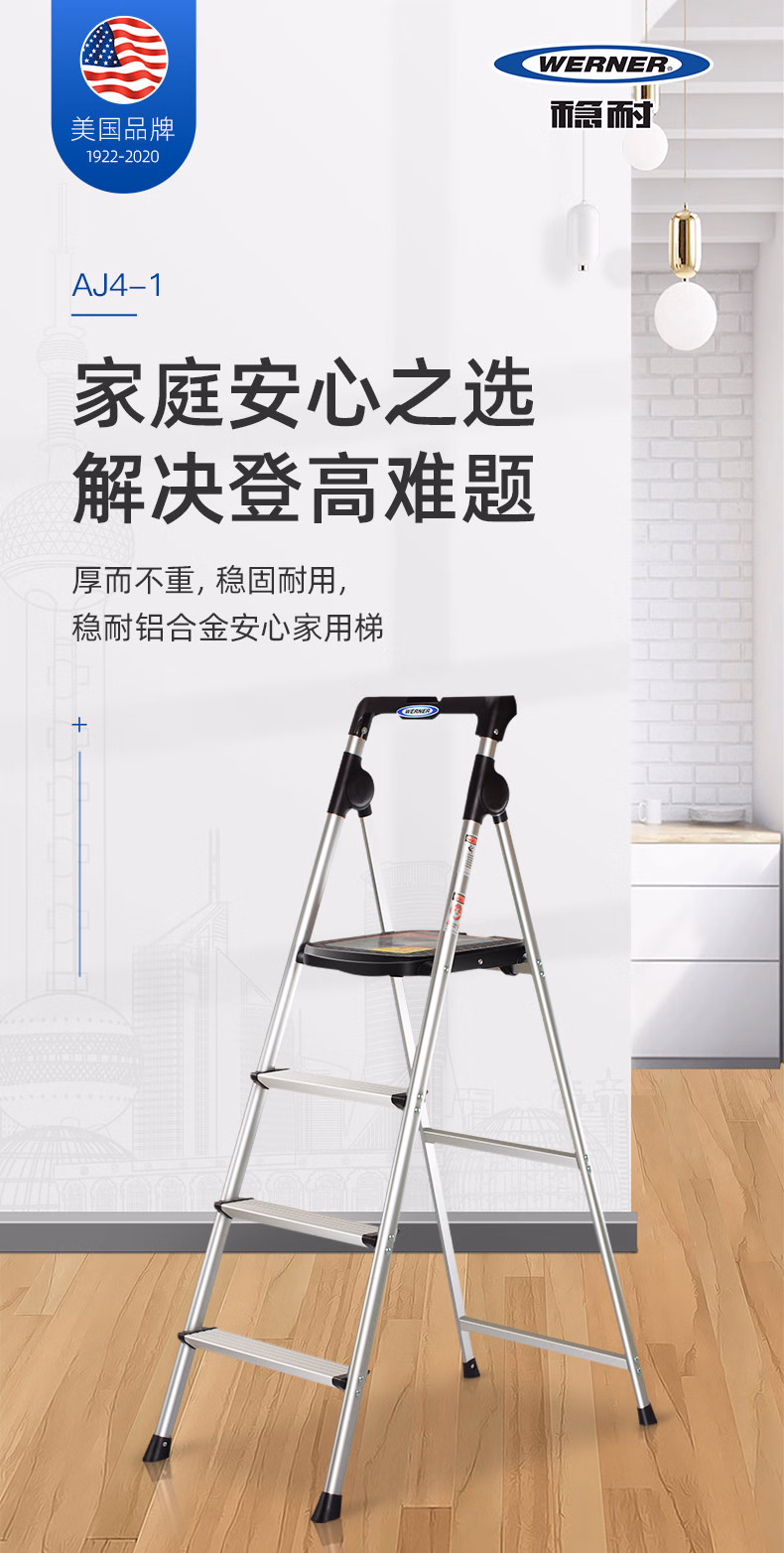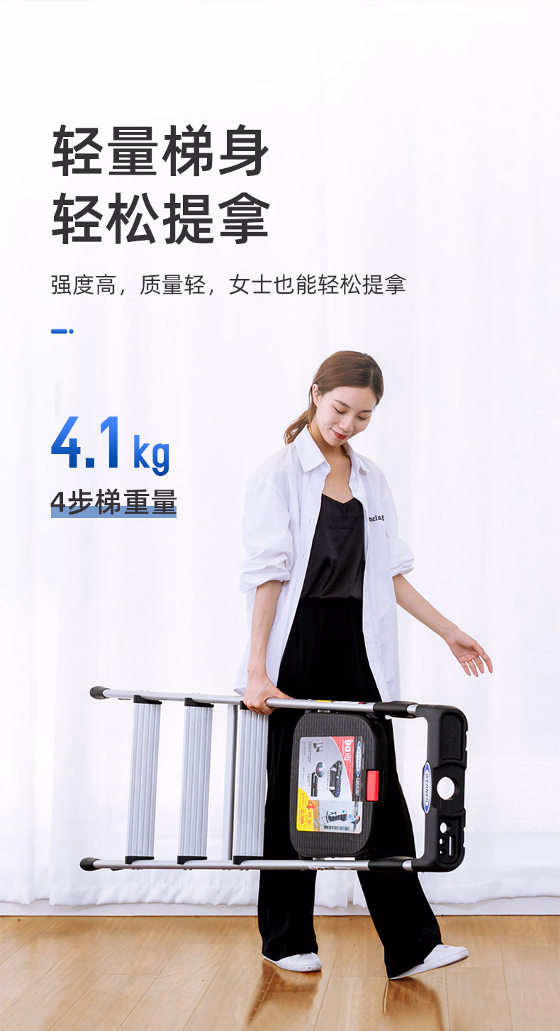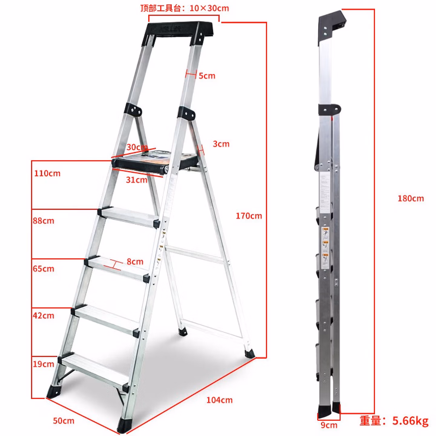 > 稳耐家用梯子铝合金人字梯五步梯多功能室内登高梯1.6米 CAL5-3