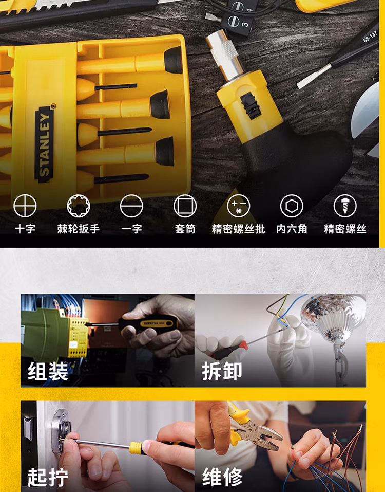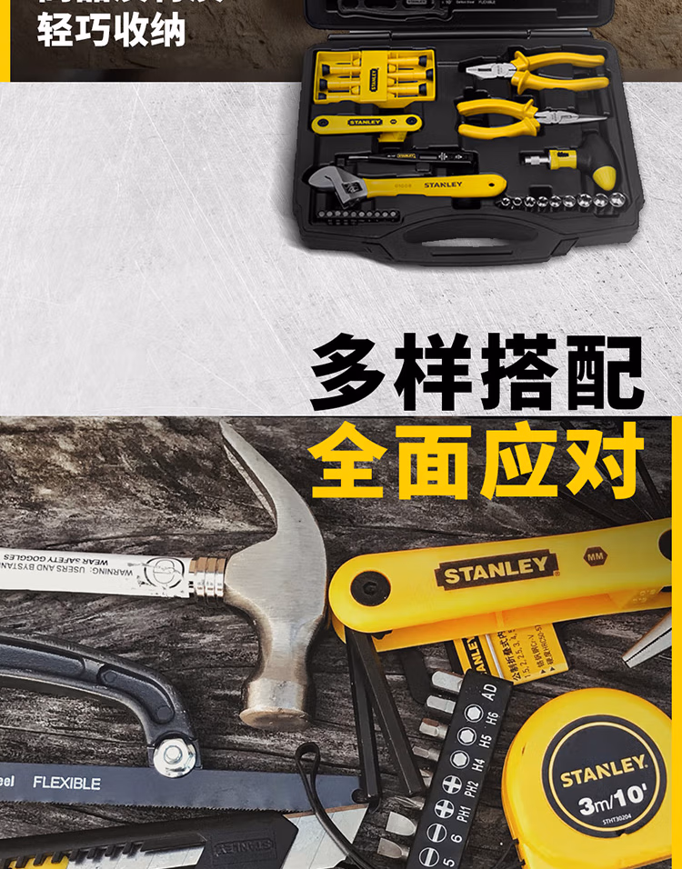 > 史丹利(STANLEY) 家用工具箱套装45件维修多功能五金工具箱MC-045