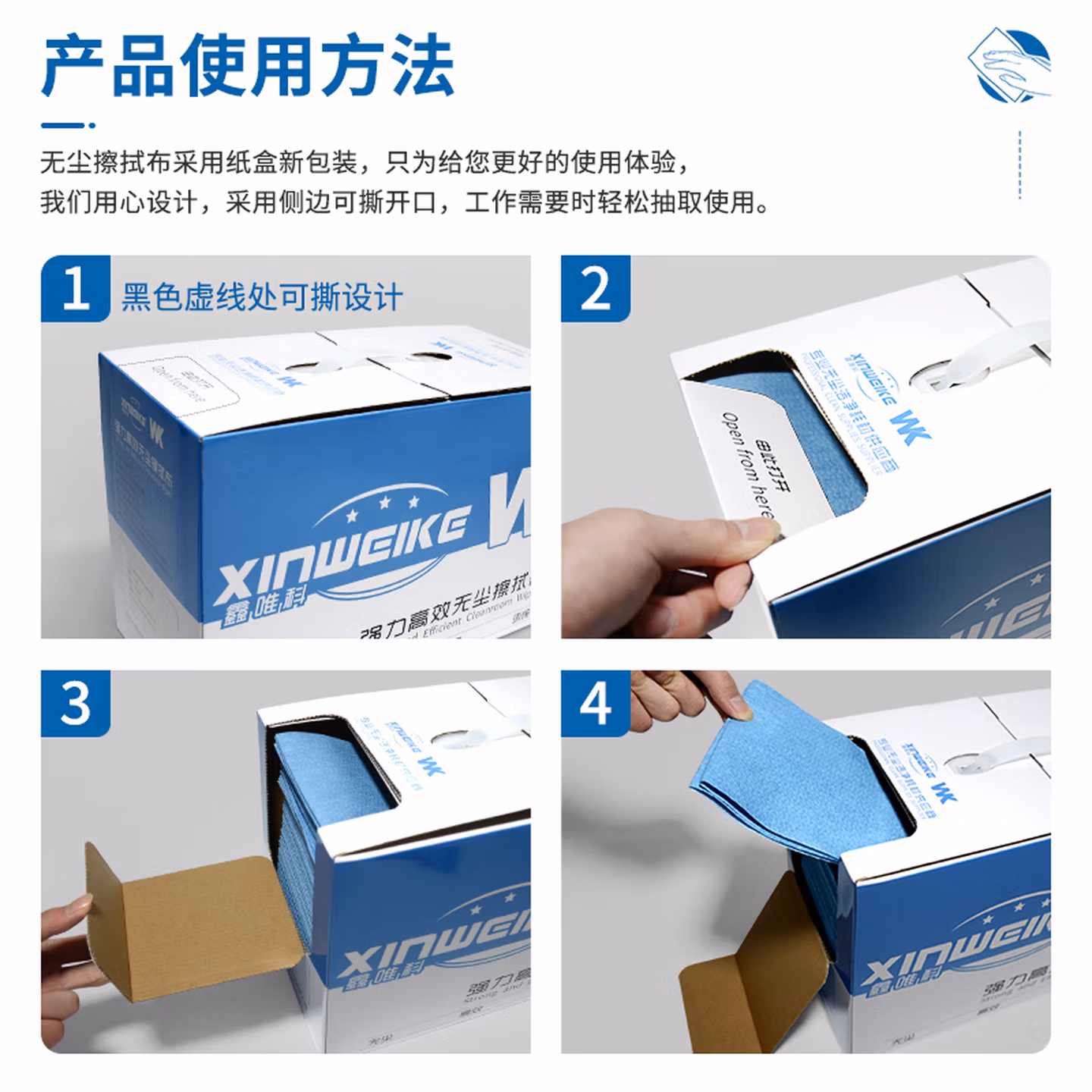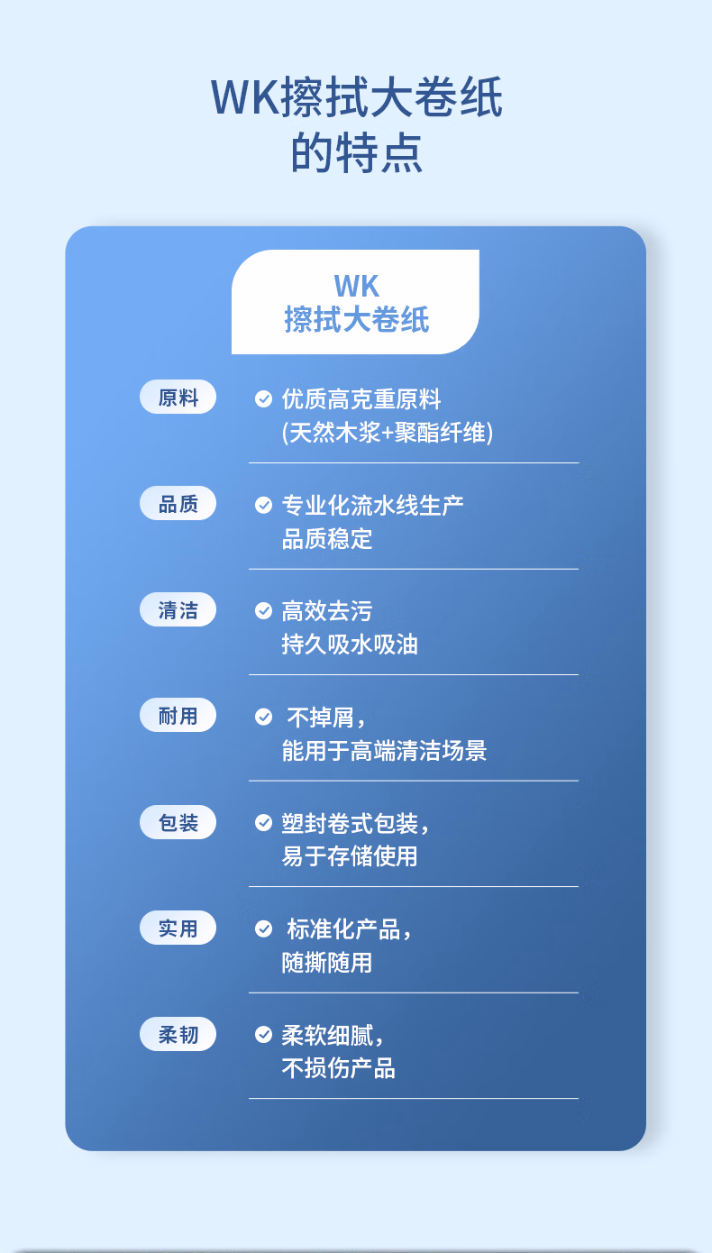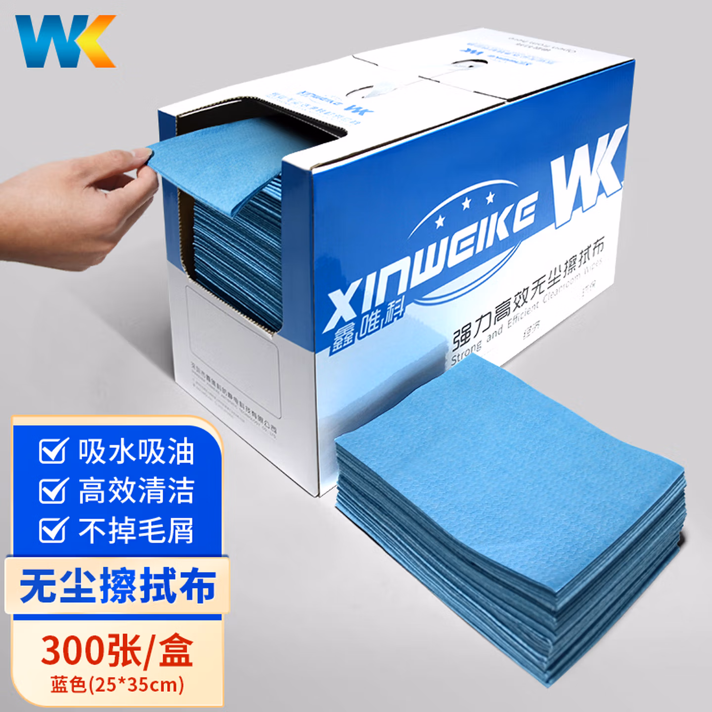 WK工业擦拭纸无尘纸无纺布吸油吸水卷纸汽修机械维修工厂实验室擦油纸除尘纸 蓝色 12.5*38cm