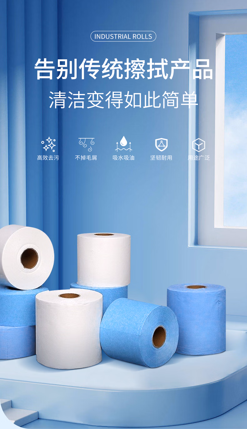 > WK工业擦拭纸无尘纸无纺布吸油吸水卷纸汽修机械维修工厂实验室擦油纸除尘纸 蓝色 12.5*38cm