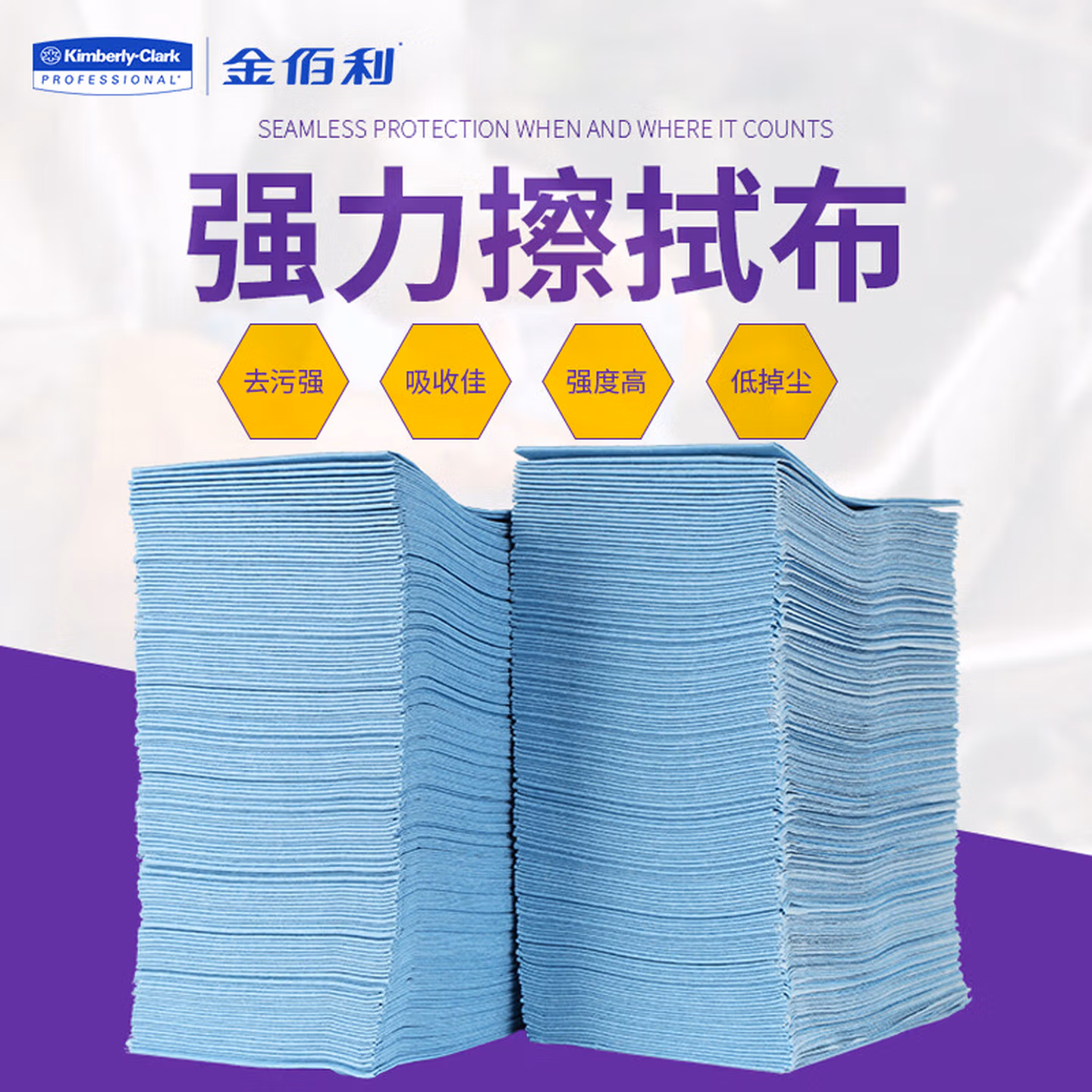 > 金佰利(Kimberly-Clark)金特 抹布 强力高效擦拭布 蓝色 94165 一箱装 折叠式