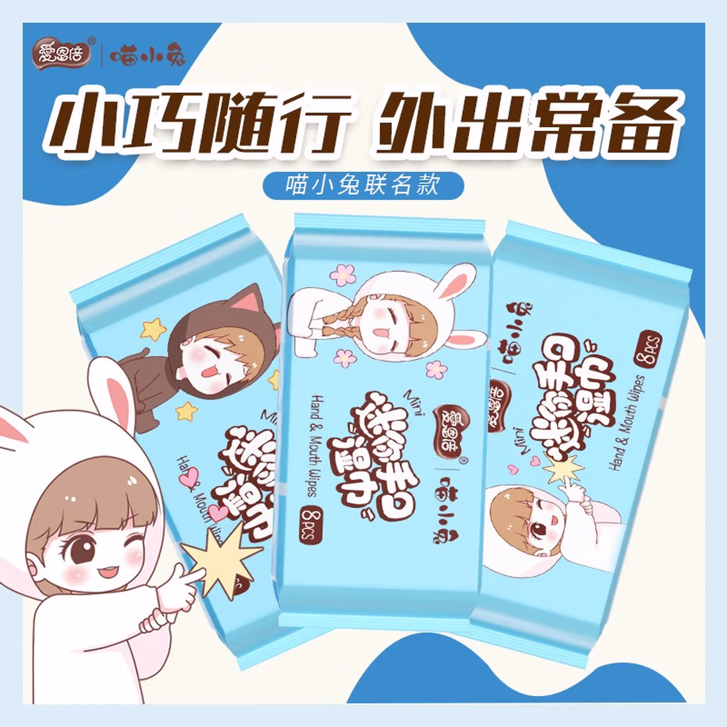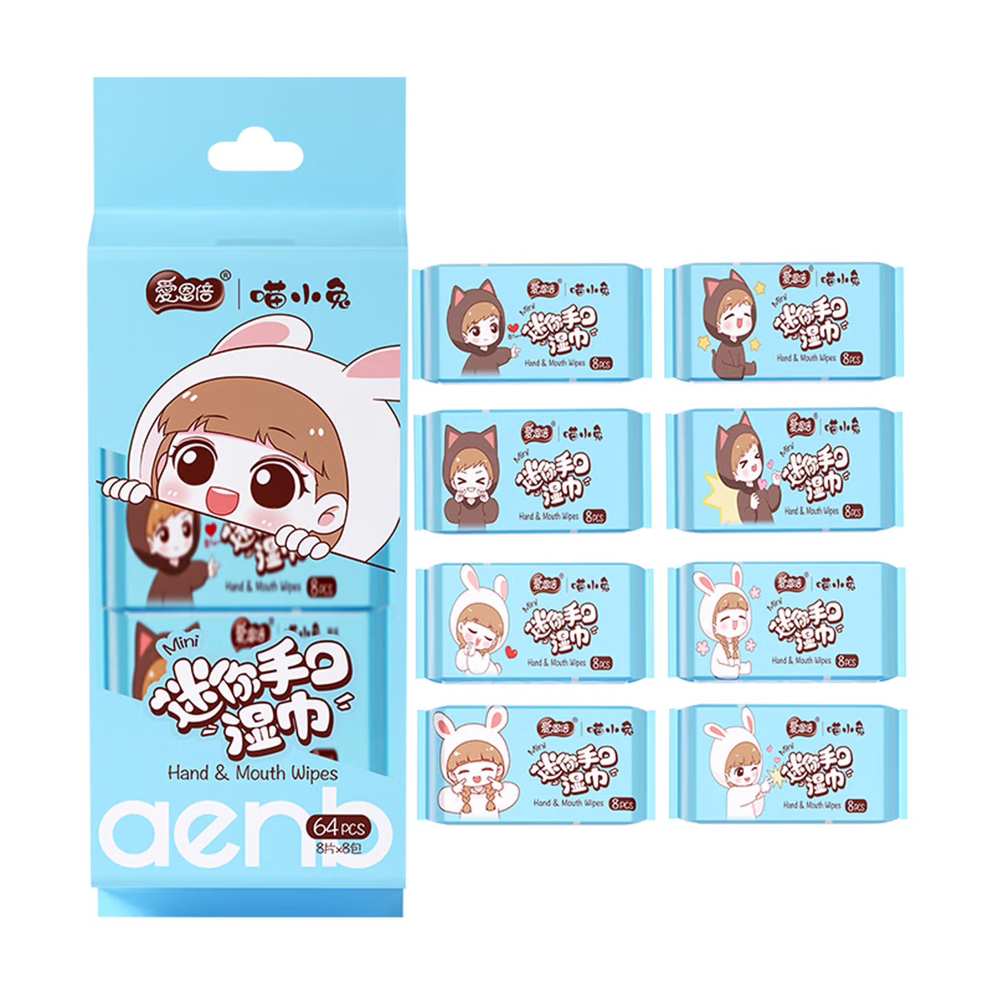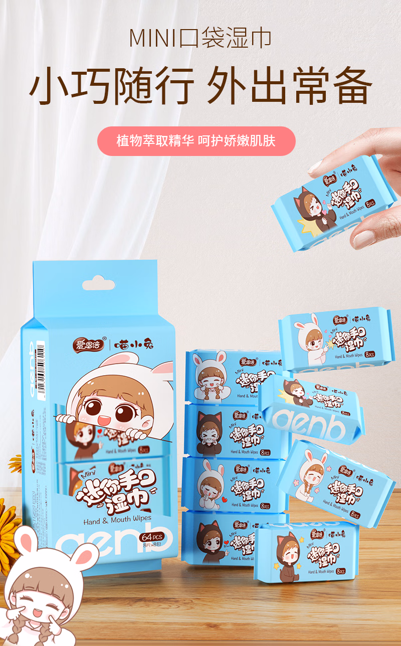 > 爱恩倍迷你婴幼儿童学生湿巾纸小包便携随身擦手口屁宝宝湿纸巾 【新品尝鲜】1提8包