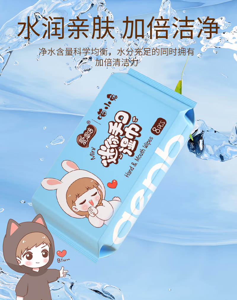 爱恩倍迷你婴幼儿童学生湿巾纸小包便携随身擦手口屁宝宝湿纸巾 【新品尝鲜】1提8包
