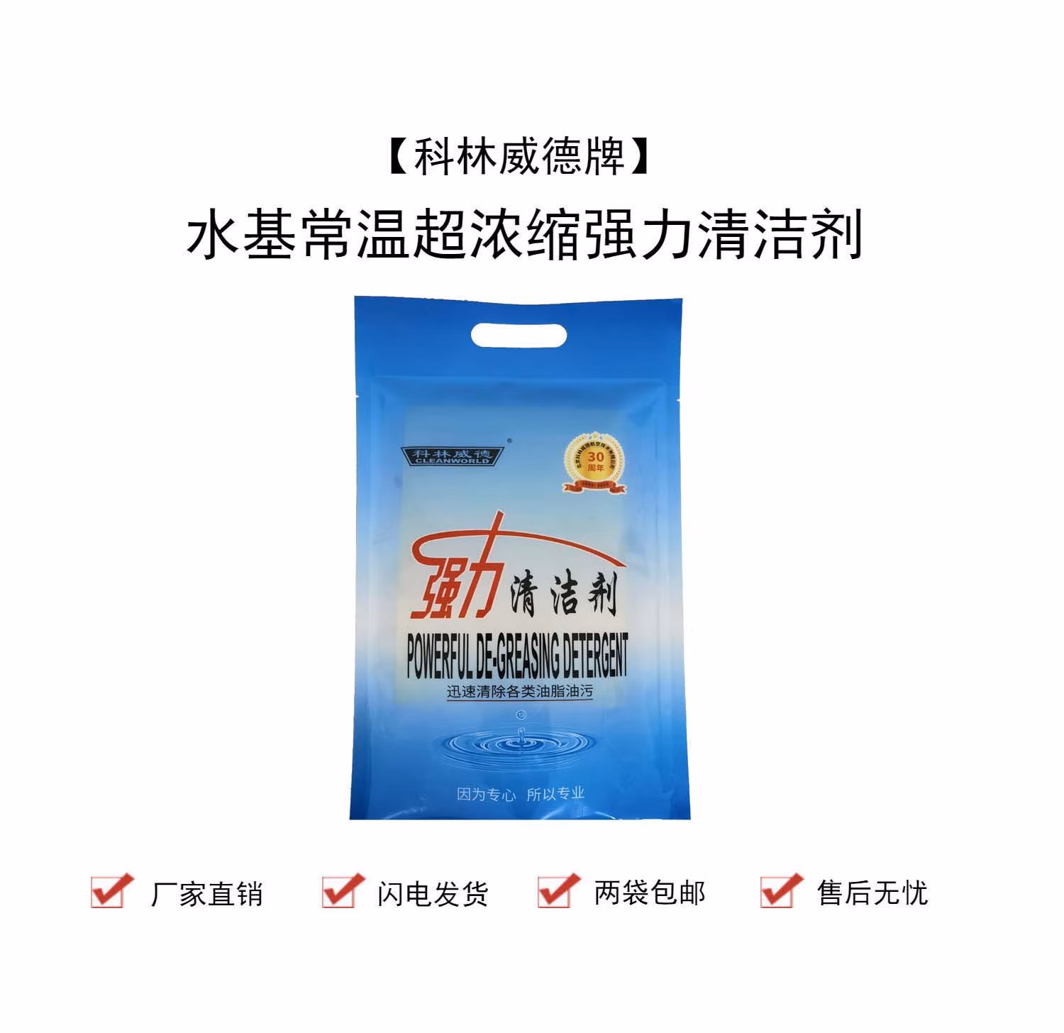 > 科林威德清洁剂工业清洁剂金属清洗剂重油污超声波清洗剂科林威德;CLEANWORLD 1袋