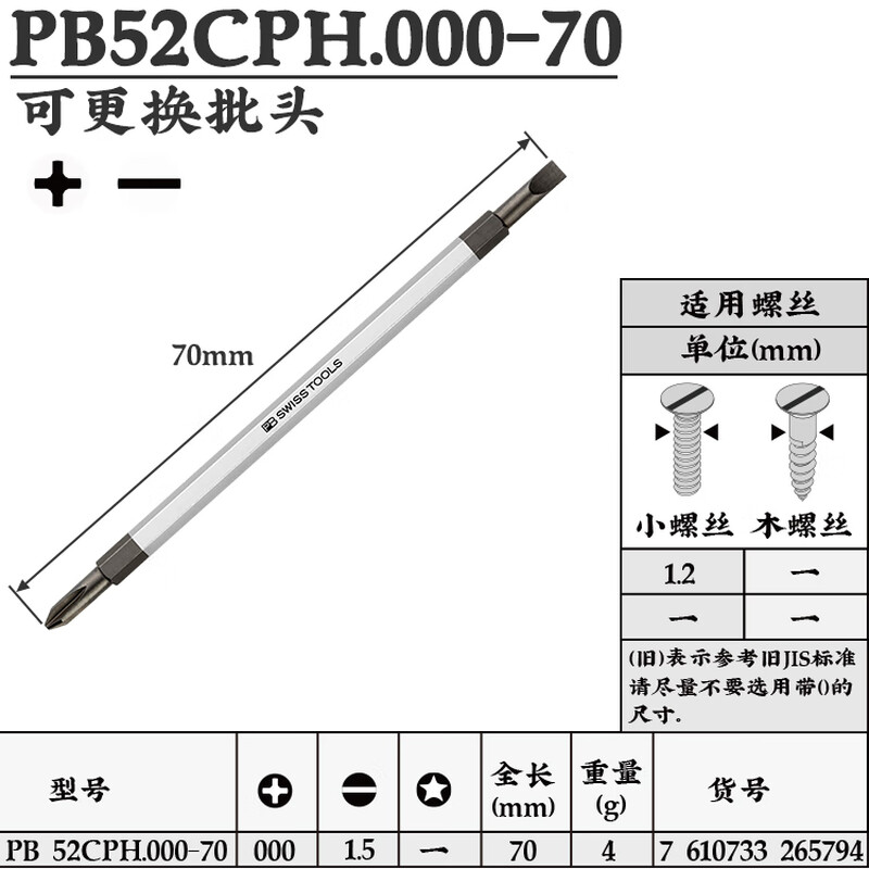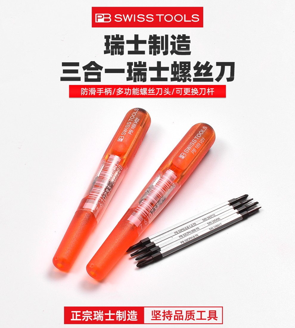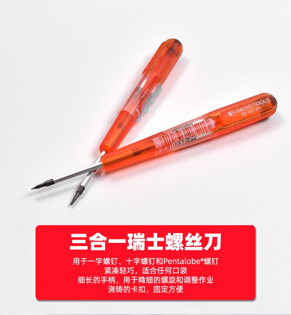 > PB SWISSTOOLS瑞士进口螺丝刀精密改锥批3合一五角笔型刀杆iphone苹果手机维修 PB 52CPH.000-70