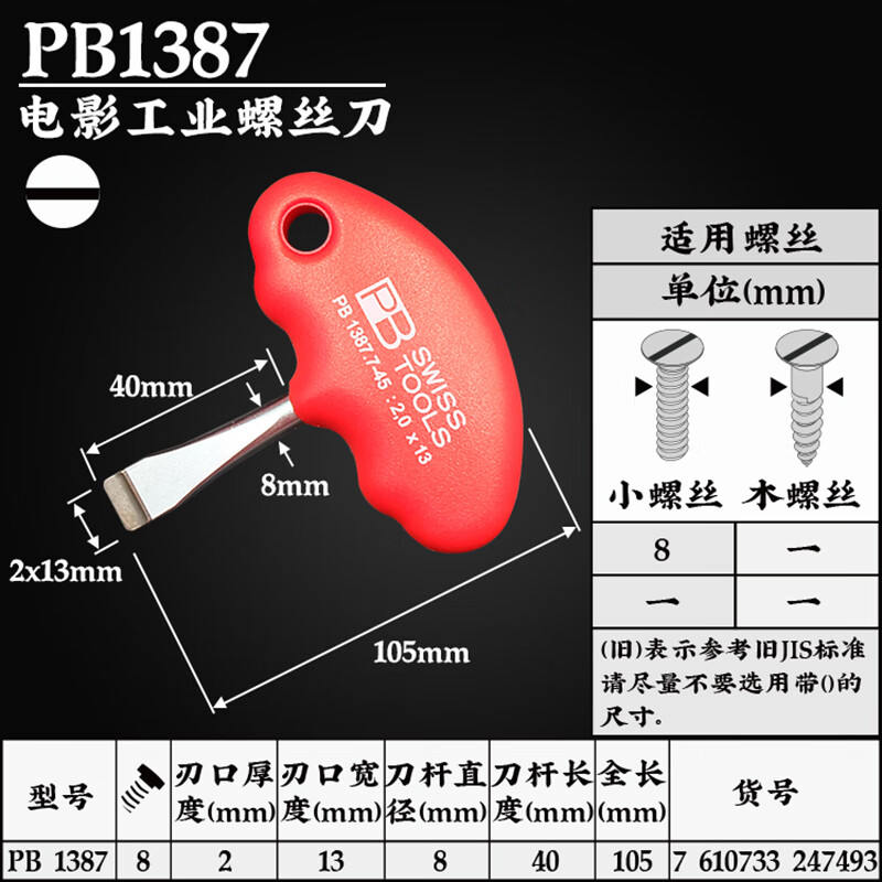 > PB SWISSTOOLS瑞士原装进口螺丝刀一字T柄影视云台版专用起子13mm改锥PB 1387 13*40mm PB 1387