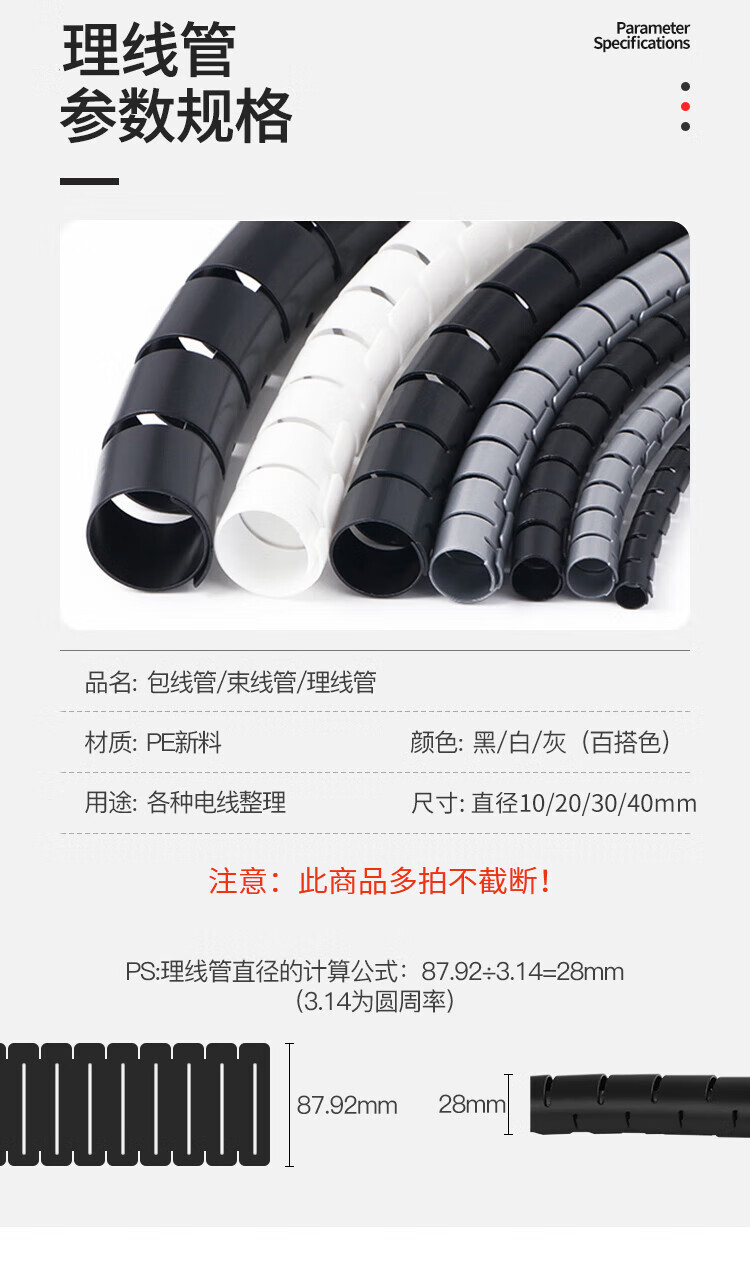 > 海斯迪克 包线管束线管 电线收纳管理线器 缠绕管理线管保护套(多拍不截断)黑色30mm(10米) H-510