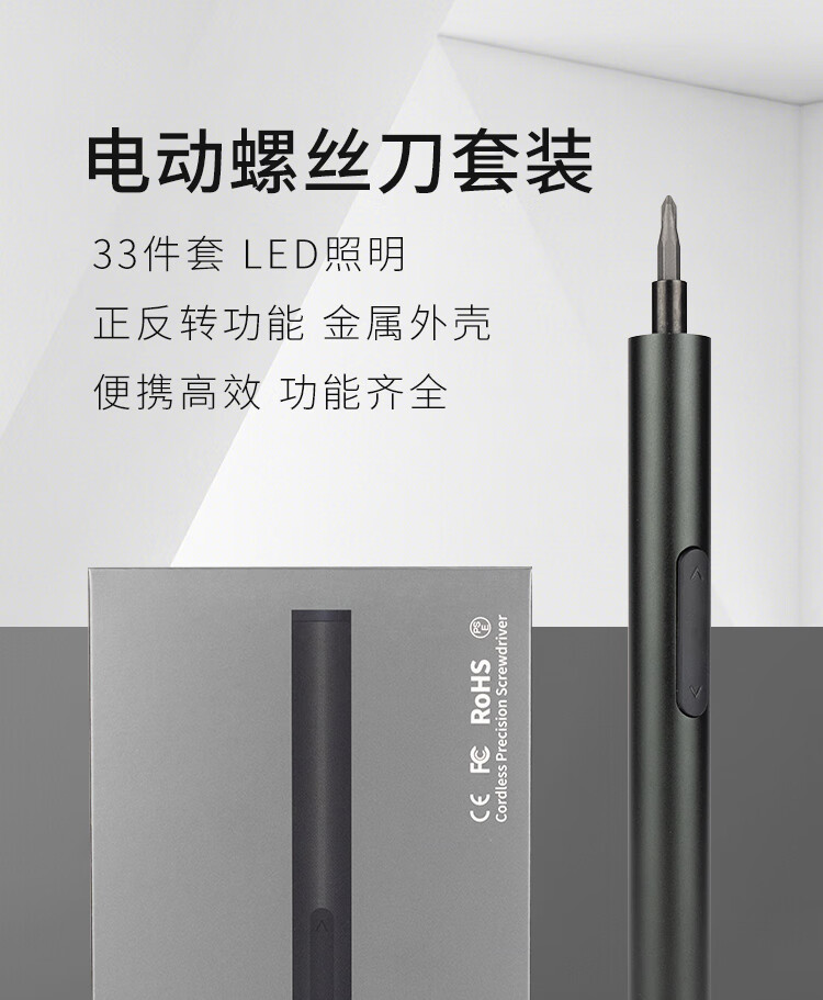 > 海斯迪克 HKsq-188 精修电动螺丝刀套装 带灯款多功能手机拆机工具 多批头迷你电起子 33件套带加磁器铝盒装