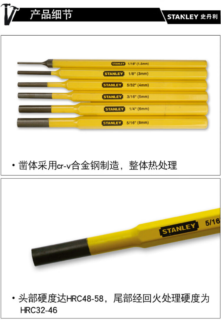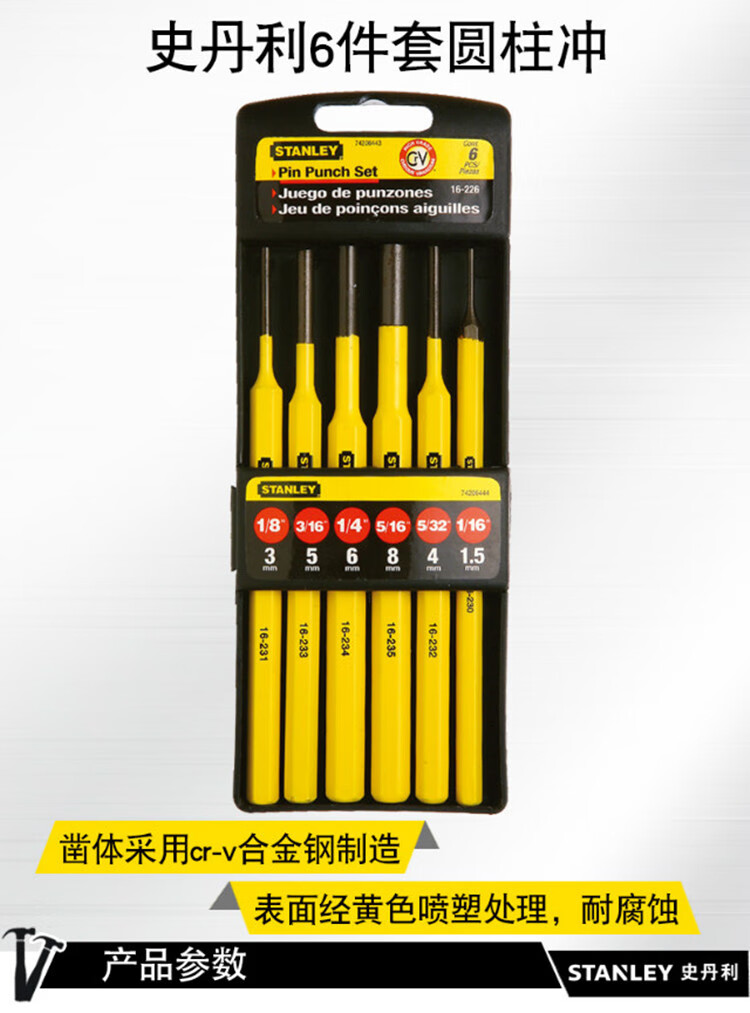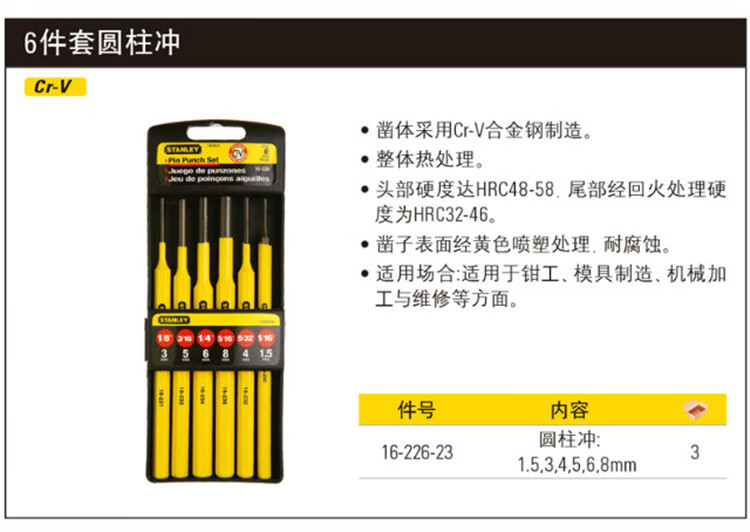 史丹利(STANLEY)16-226-23 6件套圆柱冲套装 圆柱冲 平头冲