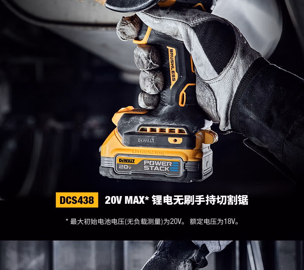 > 得伟(DEWALT)20V无刷锂电手持切割锯无线充电式圆盘锯木工金属切割机手提锯 DCS438N-A9【20v 双电5.0Ah】