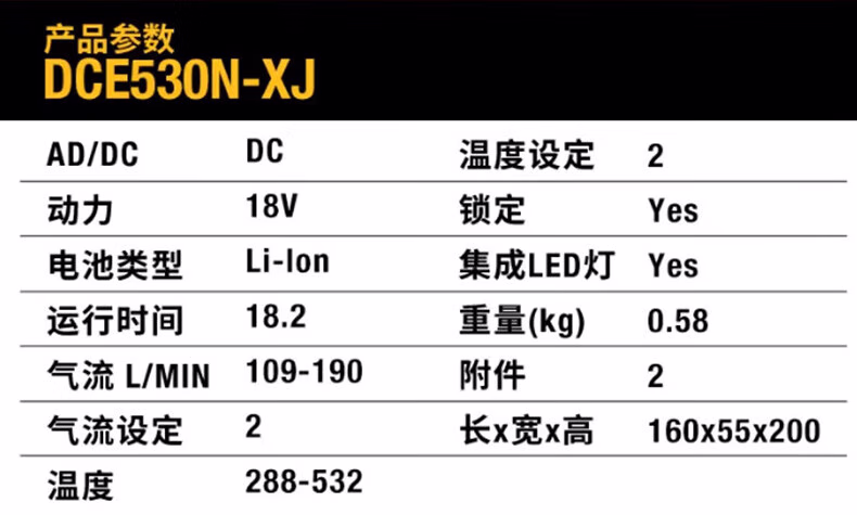 > DCE530N-A9 20V锂电热风枪单机纸盒装