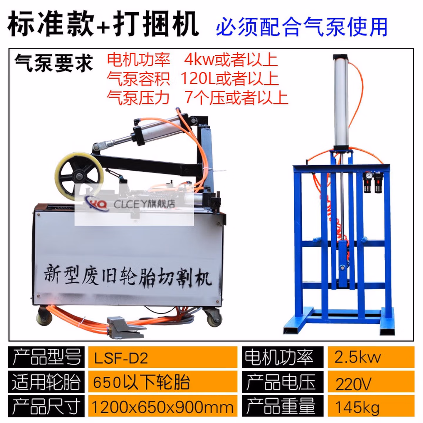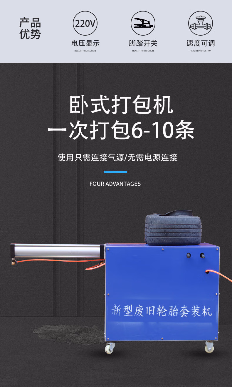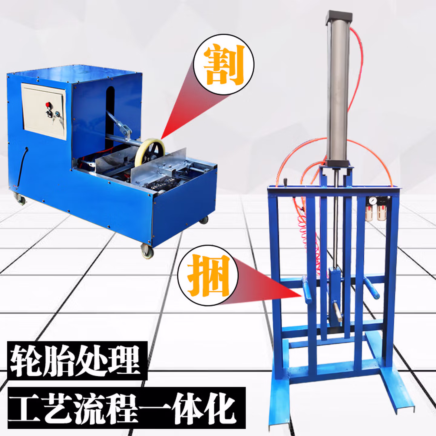 > 靠森(Kaooseen)废旧轮胎切割机器小车钢丝轮胎双面割边工具分割机刀片打包打捆机 第二代切割机+打捆机