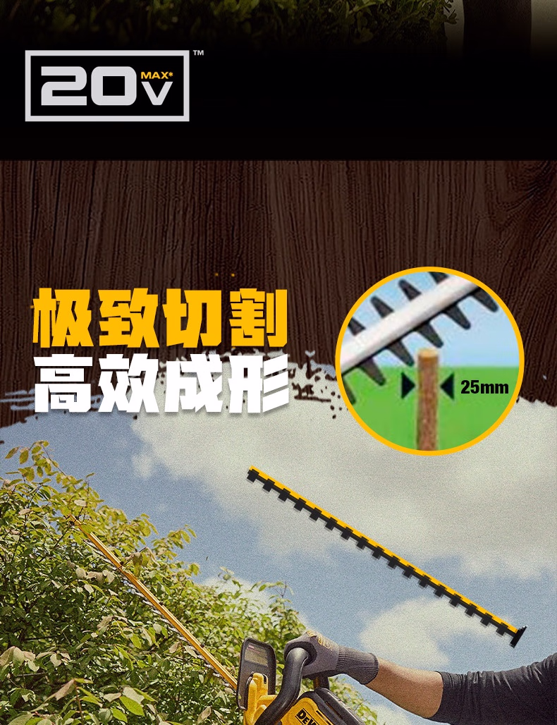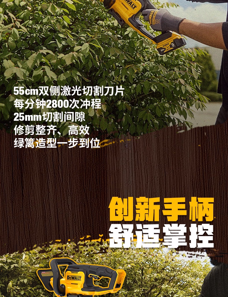 > 得伟20V锂电绿篱机修剪机园林绿化带长续航DCMHT564N-A9