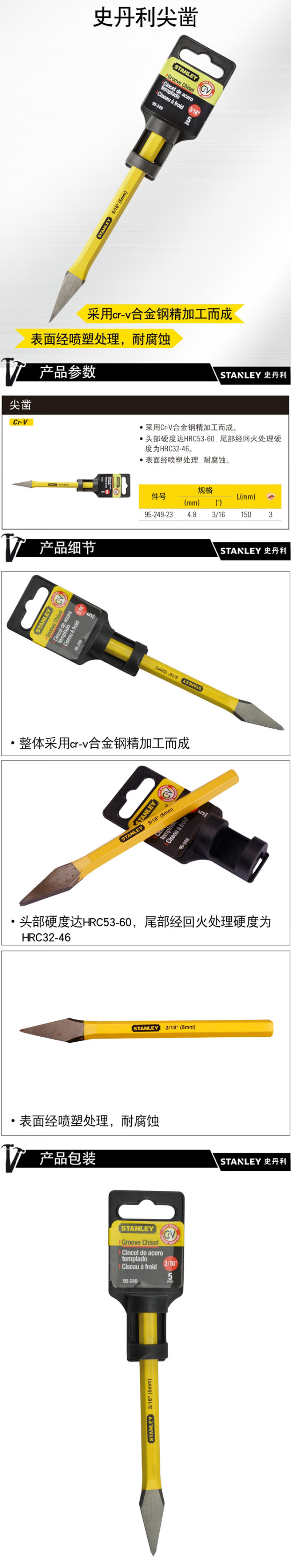 史丹利(STANLEY)尖凿4.8mm手工水泥凿破石头工具劈石器凿子钢冲头錾子95-249