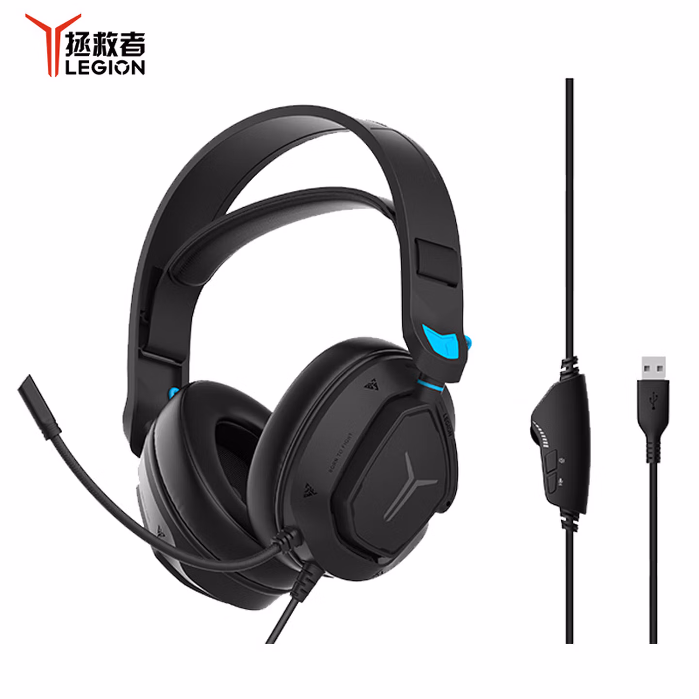> 联想(Lenovo)拯救者StarY360 USB7.1声道游戏耳机头戴式有线电脑电竞耳机耳麦 带线控 黑畅玩黑神话悟空