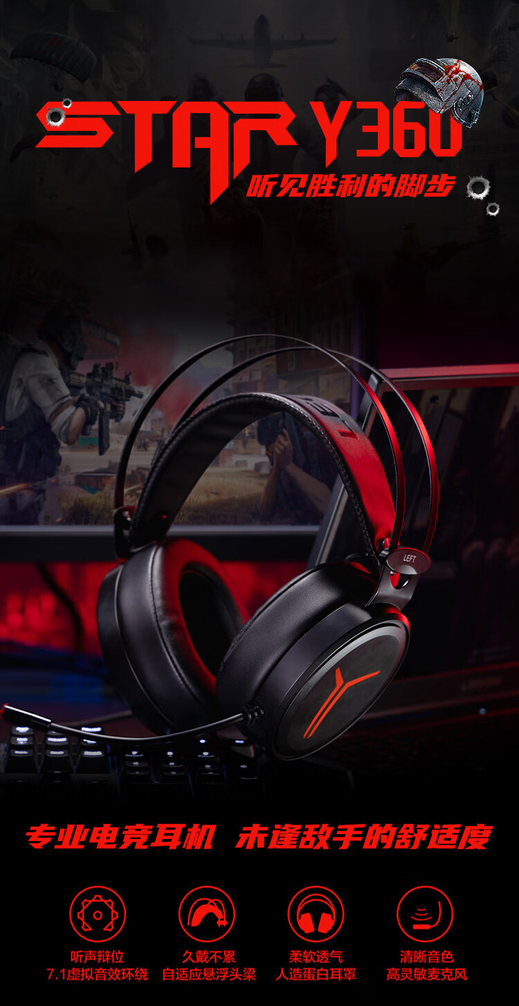 联想(Lenovo)拯救者StarY360 USB7.1声道游戏耳机头戴式有线电脑电竞耳机耳麦 带线控 黑畅玩黑神话悟空