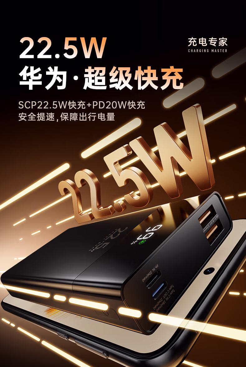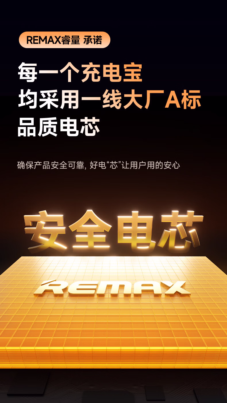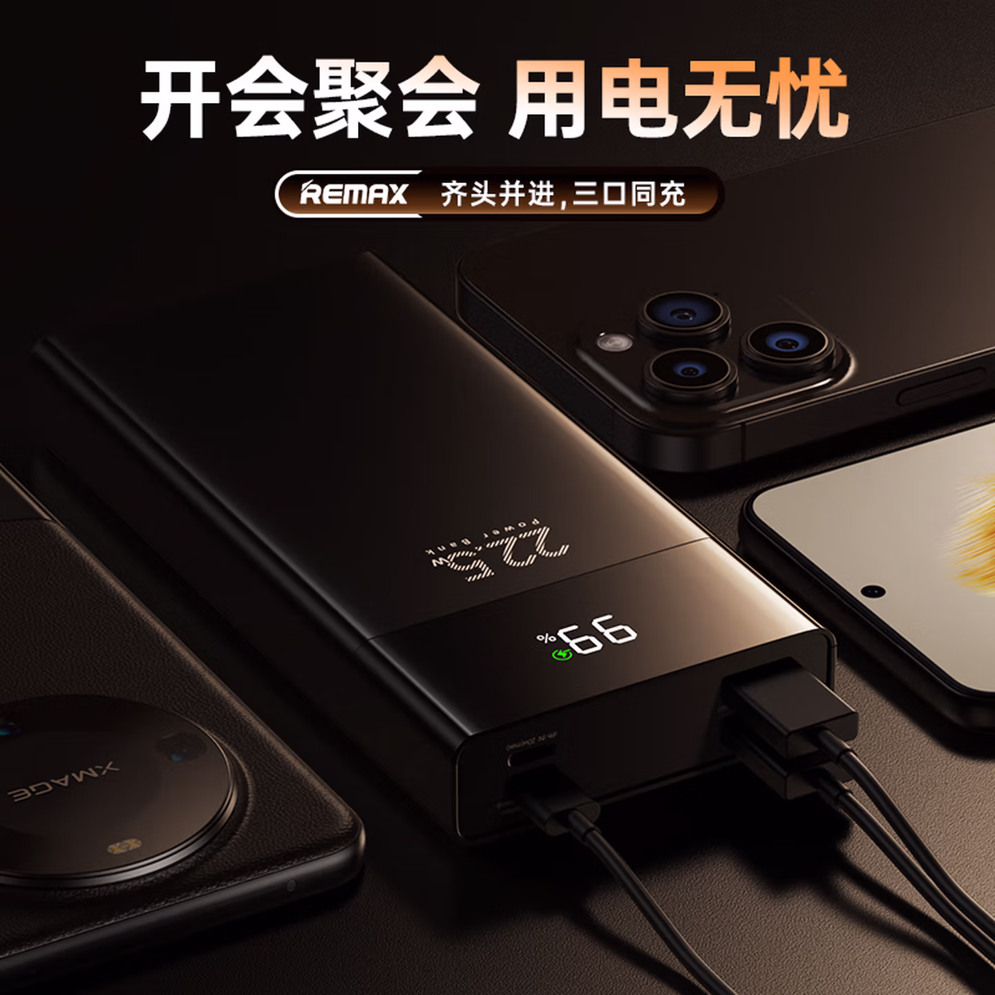 > remax睿量22.5W超级快充20000毫安时大容量充电宝移动电源PD20W双向快充适用苹果14/15安卓小米华为手机
