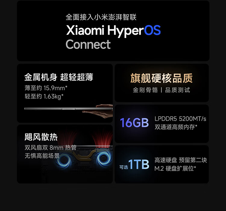 > 小米笔记本电脑 红米 Redmi Book 16 2024 酷睿i5标压 16英寸 1TB 办公学生轻薄本(i5 16G 1T 100%sRGB) 星辰灰