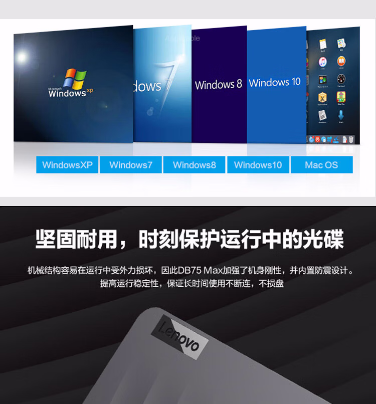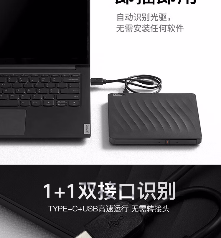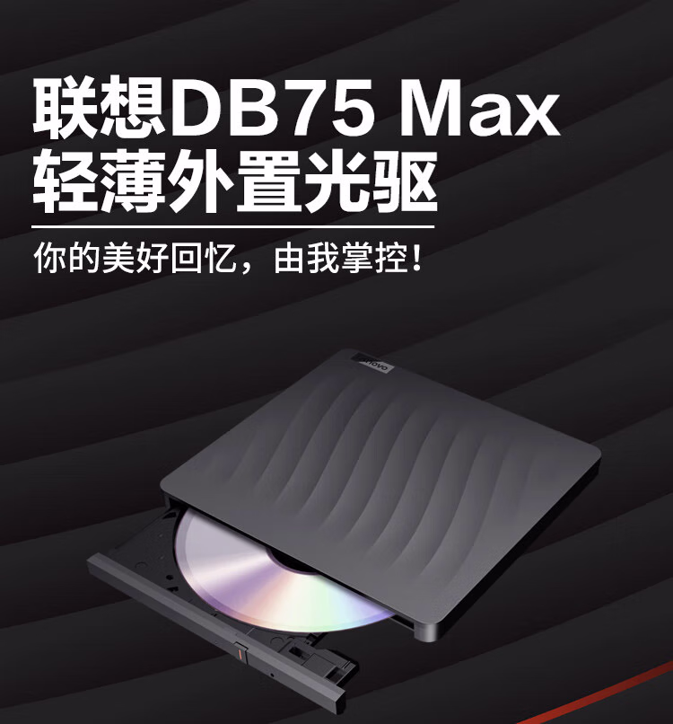 > 联想(Lenovo)8倍速 外置光驱 DVD外置刻录机 移动外接光驱 电脑便携光驱外置读刻一体 DB75-Max