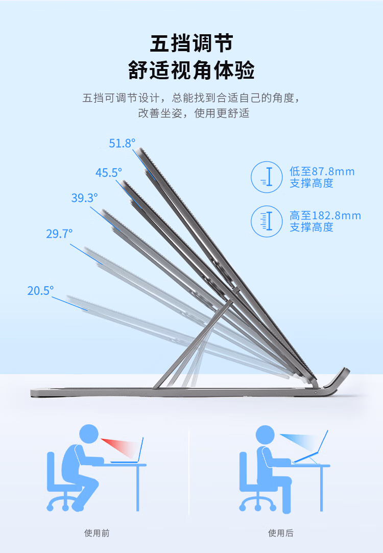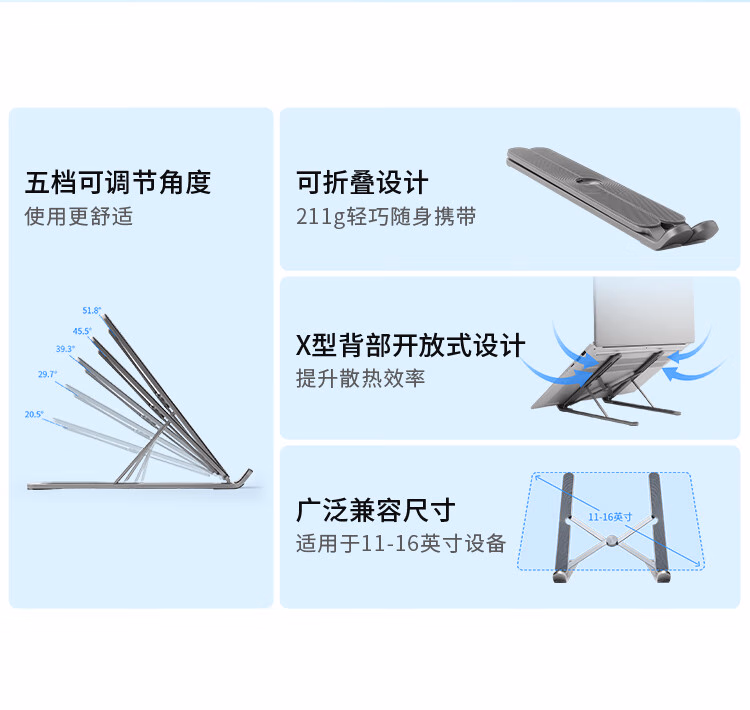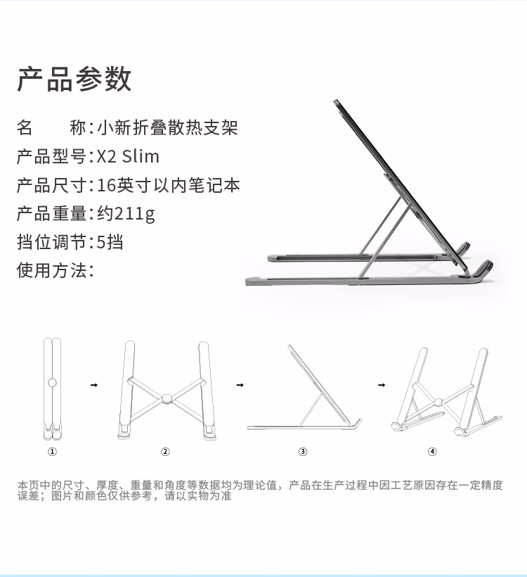 联想(Lenovo)小新笔记本支架X2 slim铝合金折叠便携5档升降 电脑增高笔记本散热器平板手机支架 小新便捷多功能支架X2