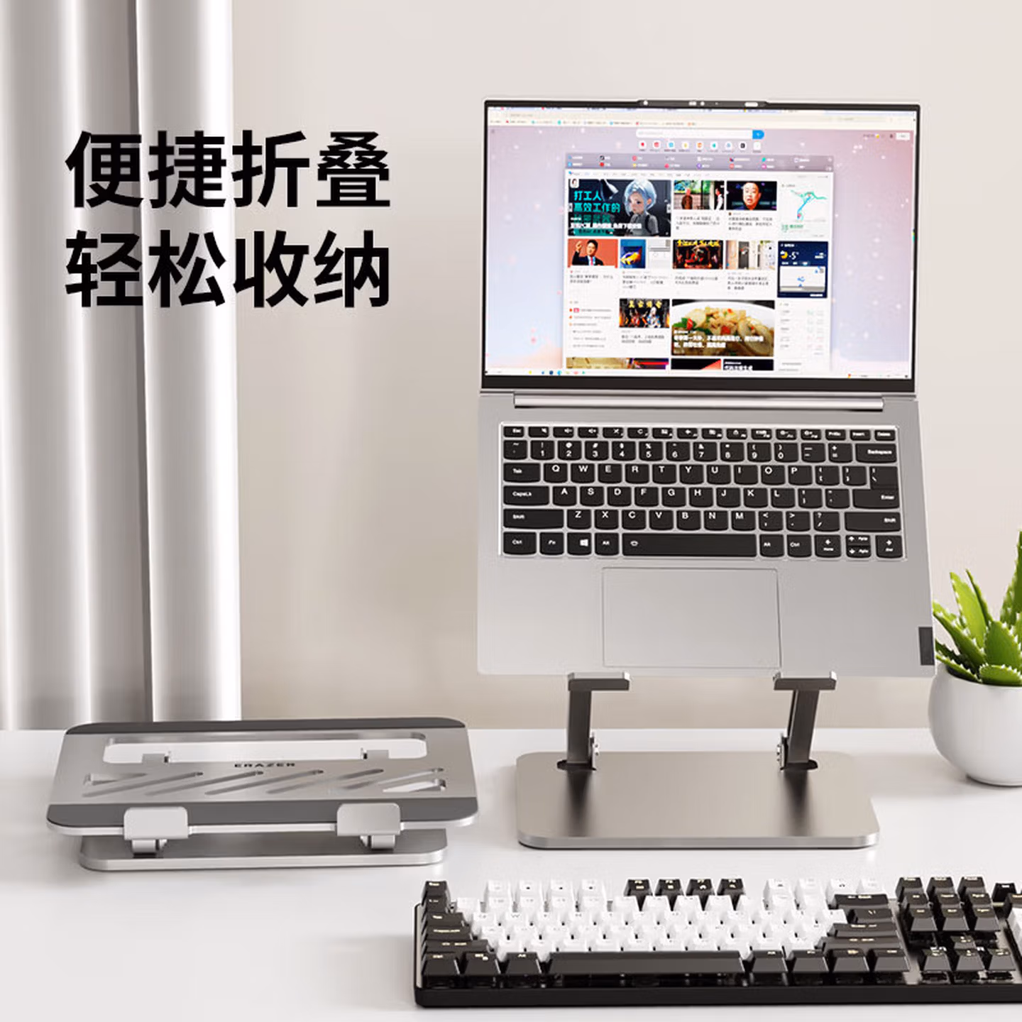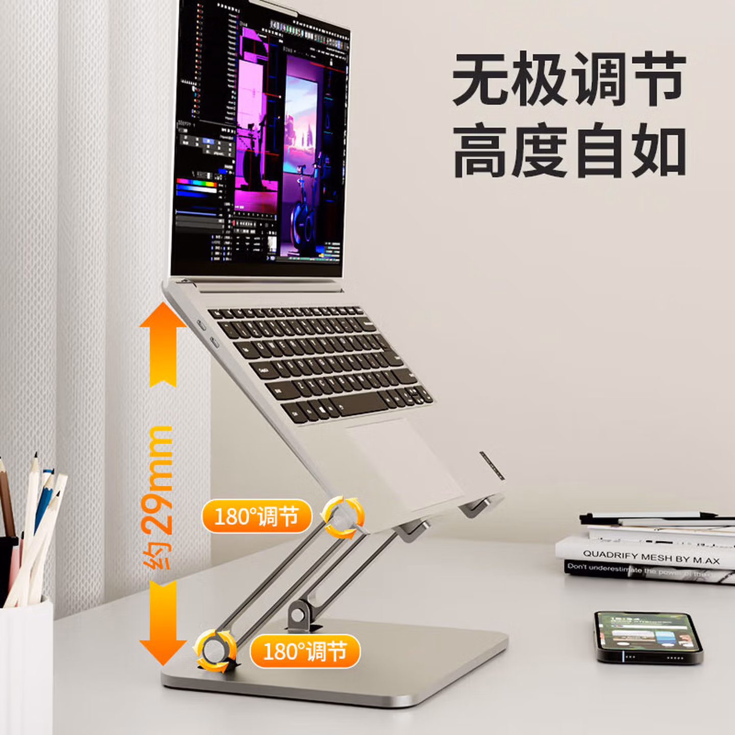 > 联想(Lenovo) 笔记本电脑支架散热可折叠便携增高架笔记本配件支撑架 陨石灰【异能者W7 】支架(无极调节+升降)