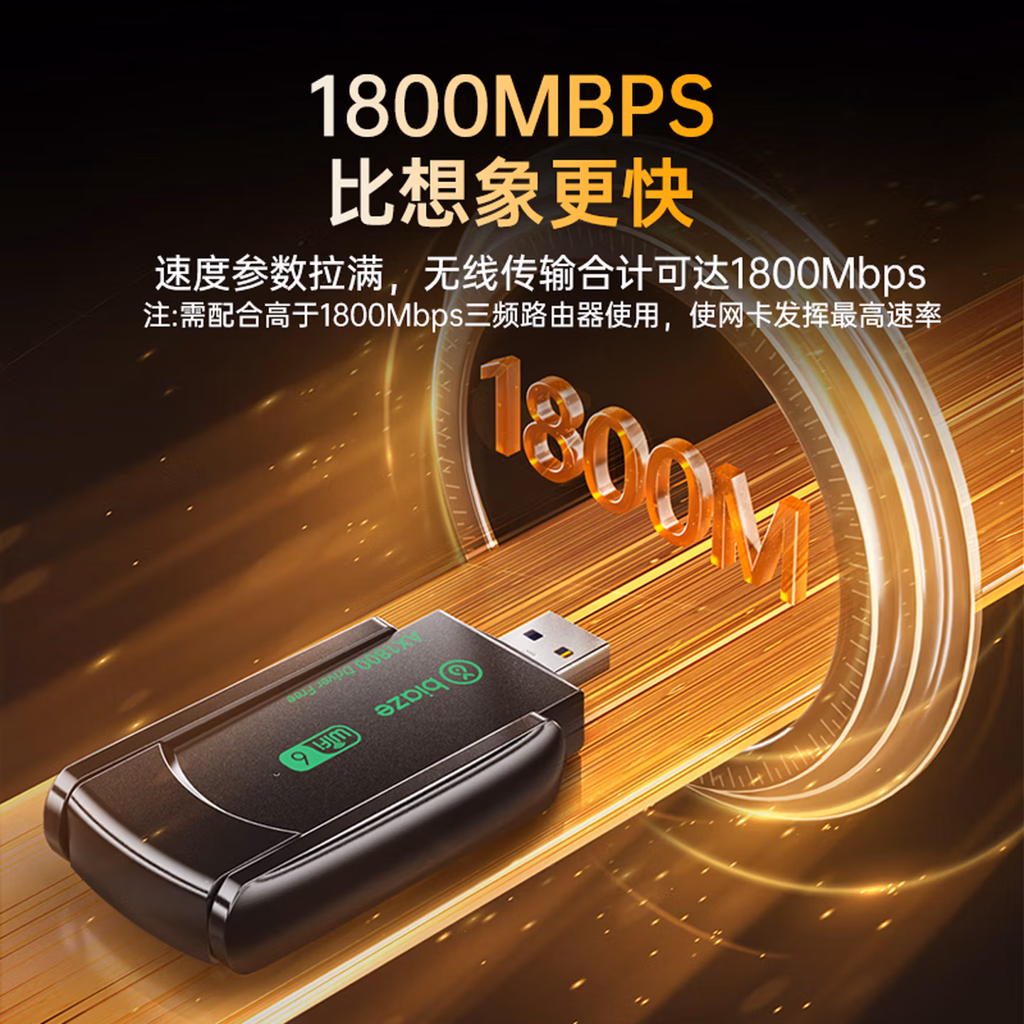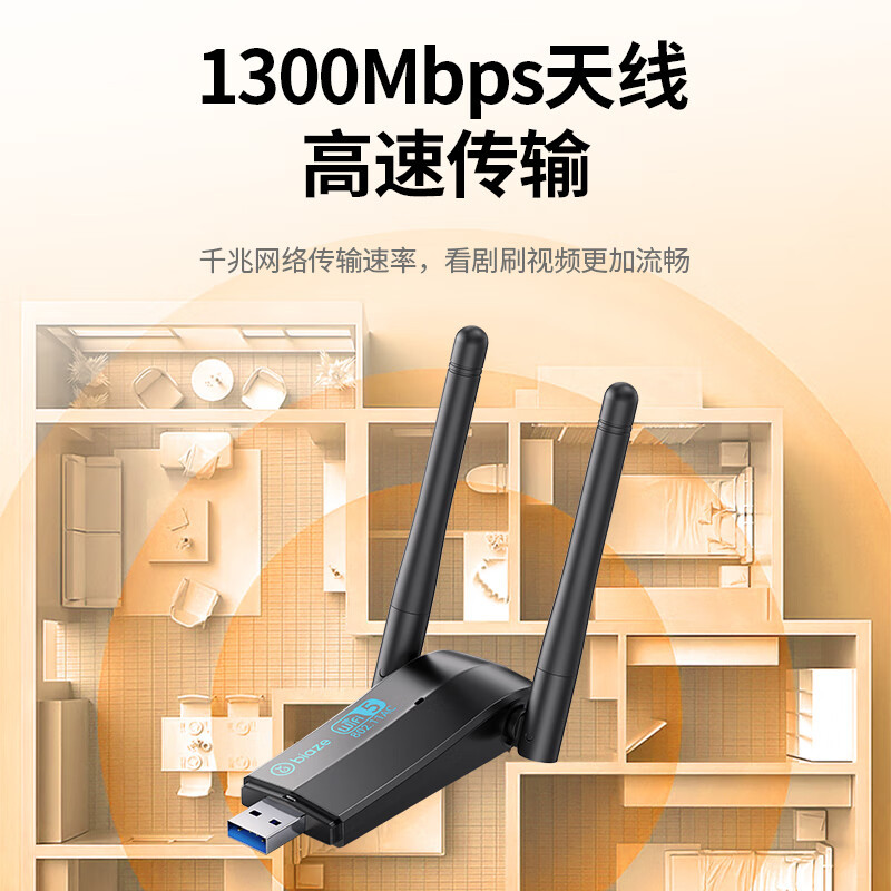 > 毕亚兹 USB无线网卡免驱版 1300M千兆5G双频 笔记本台式机电脑外置 随身wifi接收发射器双天线