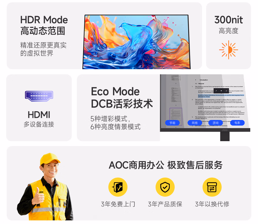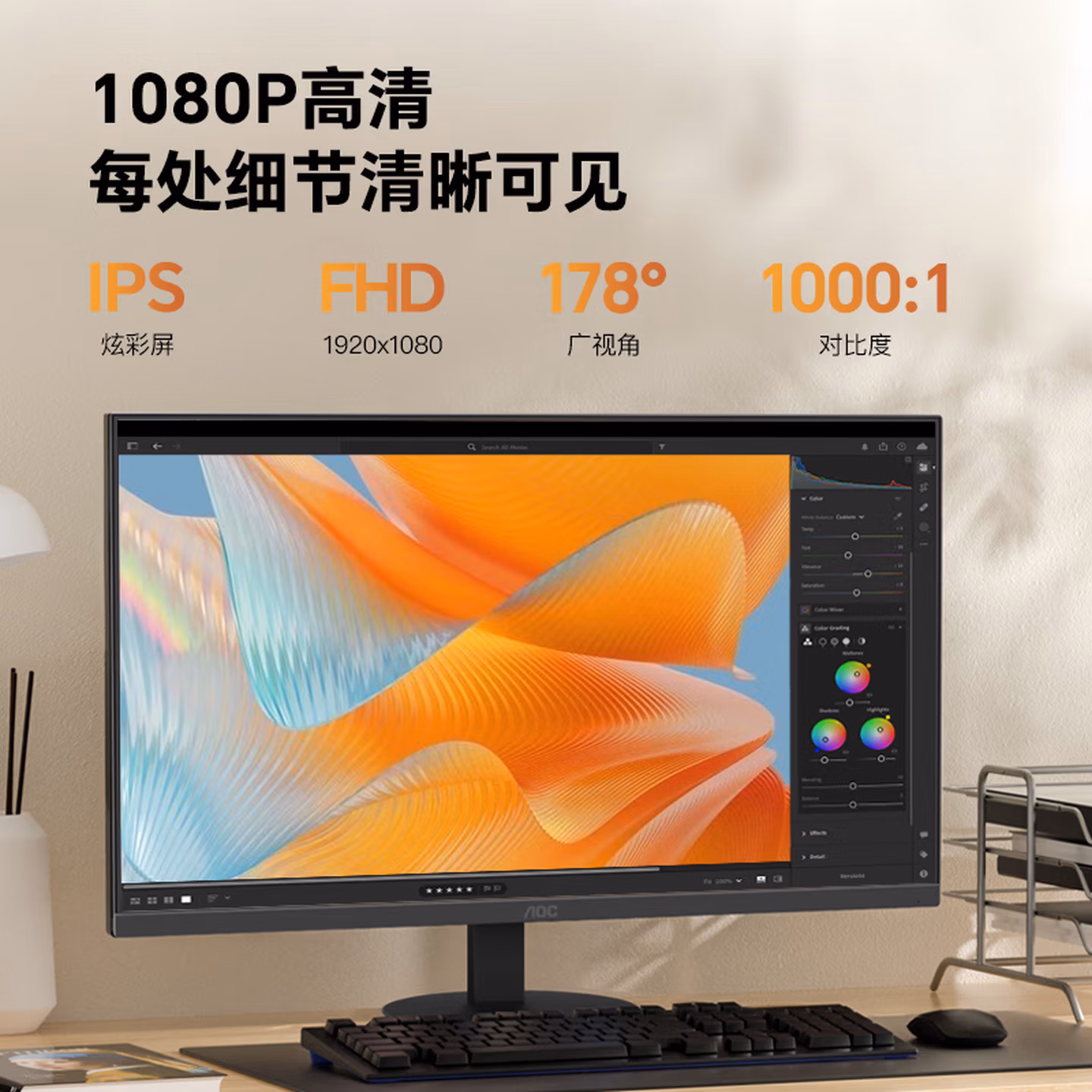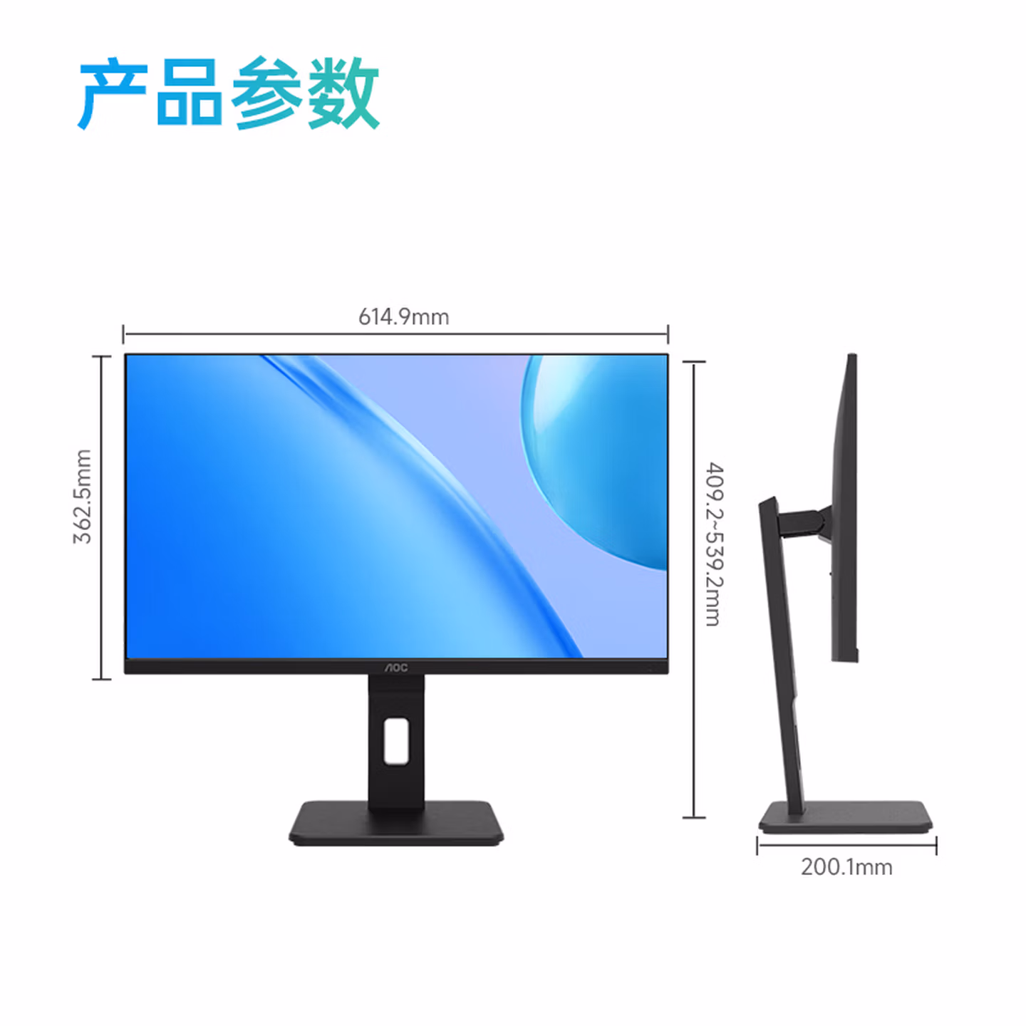 > AOC显示器 IPS电脑显示屏幕 旋转升降 办公学习护眼低蓝光 台式拓展笔记本外接扩展屏23.8英寸24P10Q